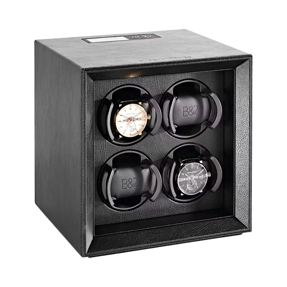 Máy lên dây đồng hồ Buben & Zorweg Safe Master 4 Black là lựa chọn hoàn hảo để bảo quản an toàn và sang trọng tối đa bốn chiếc đồng hồ tự động. Thiết kế tối giản được bọc bằng da đen cao cấp kết hợp giữa vẻ đẹp tinh tế và kỹ thuật chính xác của Đức. Kết cấu hình khối nhỏ gọn giúp dễ dàng đặt trong không gian sống hoặc két sắt, trong khi chất liệu cao cấp cùng đường nét tỉ mỉ thể hiện đẳng cấp đặc trưng của Buben & Zorweg.