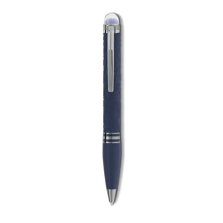 Điểm nhấn đặc trưng của bộ sưu tập là phần nắp trong suốt mang biểu tượng Montblanc nổi bật, tạo cảm giác như đang lơ lửng giữa không trung - gợi nhớ về không gian vô tận và khát khao khám phá của con người. Thân bút được chế tác từ những vật liệu cao cấp - từ nhựa đen sang trọng đến các phiên bản kim loại, kết hợp với những chi tiết gia công chính xác bằng platinum hoặc ruthenium.