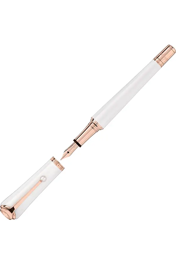 Chiếc bút máy Montblanc Marilyn Monroe Pearl là lời tri ân dành cho biểu tượng sắc đẹp và sự quyến rũ vượt thời gian. Thân bút phủ sơn mài ngọc trai trắng lấy cảm hứng từ chiếc váy huyền thoại trong phim “The Seven Year Itch”, kết hợp chi tiết mạ vàng hồng mang đến vẻ sang trọng và nữ tính.