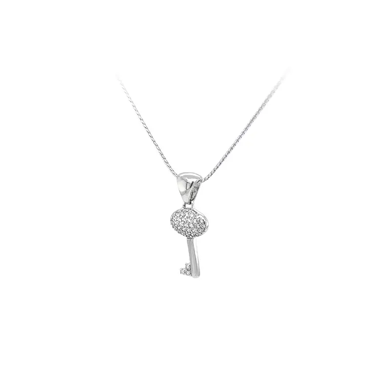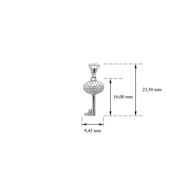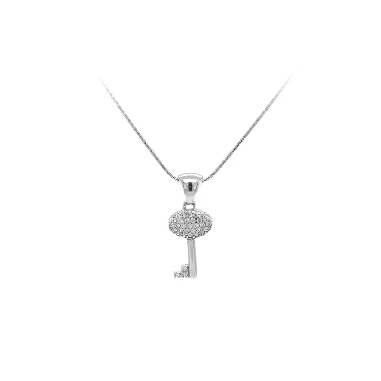 Chìa khóa dạng mặt dây chuyền với đá zircon trắng và vàng trắng