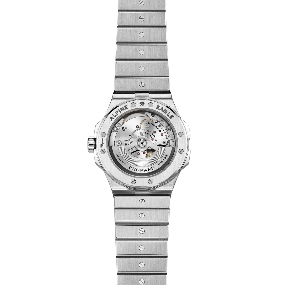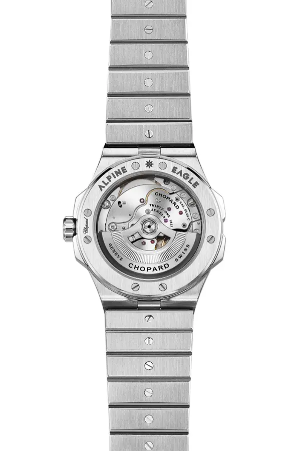 Đồng hồ Alpine Eagle kết hợp sự thể thao, sang trọng và chất liệu cao cấp. Vỏ và bộ máy được làm từ hợp kim Lucent Steel™ độc quyền, được phát triển trực tiếp bởi Chopard. Chất liệu tái chế và không gây dị ứng này nổi bật với độ sáng bóng và độ cứng tương đương vàng.