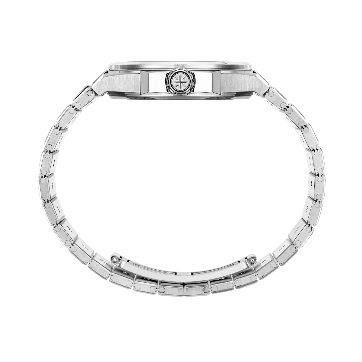 Dây đeo thép không gỉ chắc chắn đi kèm khóa gập, đảm bảo sự thoải mái và chắc chắn khi đeo.