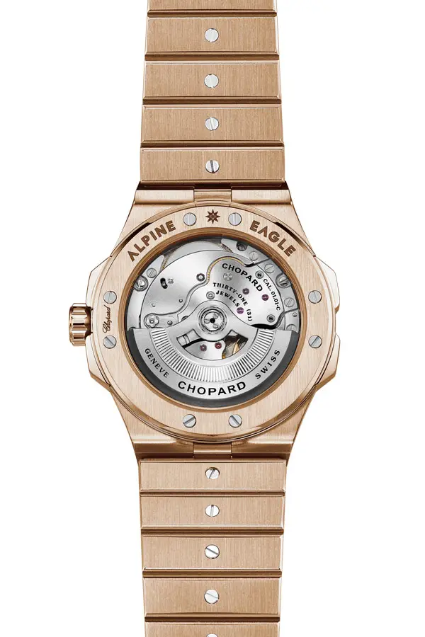 Đồng hồ Alpine Eagle kết hợp sự thể thao, sang trọng và chất liệu cao cấp. Vỏ và bộ máy được làm từ hợp kim Lucent Steel™ độc quyền, được phát triển trực tiếp bởi Chopard. Chất liệu tái chế và không gây dị ứng này nổi bật với độ sáng bóng và độ cứng tương đương vàng.