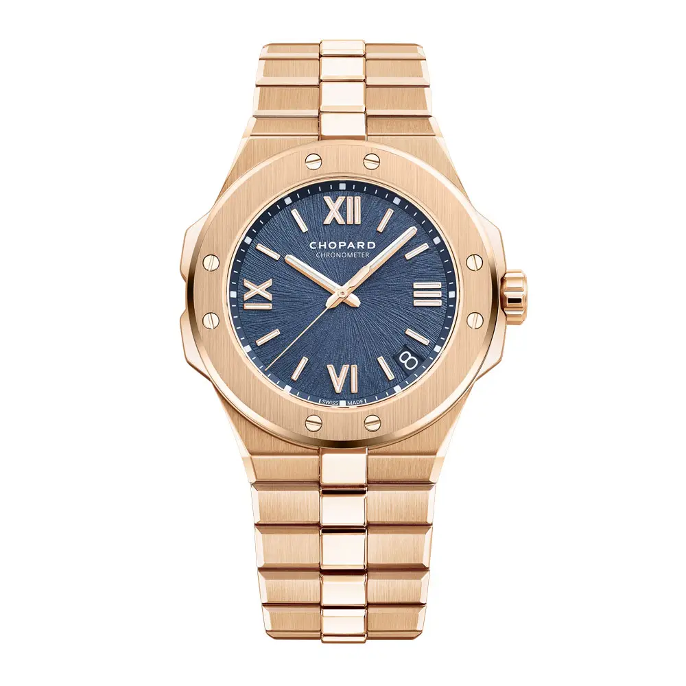 Chopard Alpine Eagle 295363-5001 là biểu tượng của sự sang trọng và kỹ thuật đỉnh cao. Thiết kế mạnh mẽ nhưng tinh tế này lấy cảm hứng từ dãy Alps hùng vĩ và ánh nhìn sắc bén của đại bàng. Mẫu đồng hồ này được chế tác hoàn toàn từ vàng hồng 18kt.