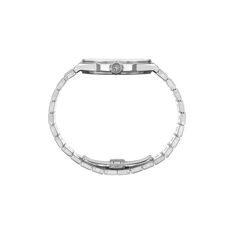 Dây đeo bằng thép không gỉ với khóa gập đảm bảo sự chắc chắn và thanh lịch.