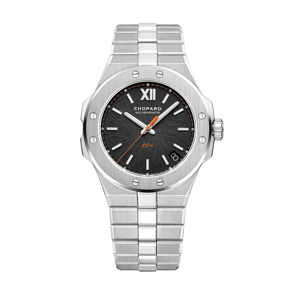 Đồng hồ Alpine Eagle kết hợp sự thể thao, sang trọng và chất liệu cao cấp. Vỏ và bộ máy được làm từ hợp kim Lucent Steel™ độc quyền, được phát triển trực tiếp bởi Chopard. Chất liệu tái chế và không gây dị ứng này nổi bật với độ sáng bóng và độ cứng tương đương vàng.