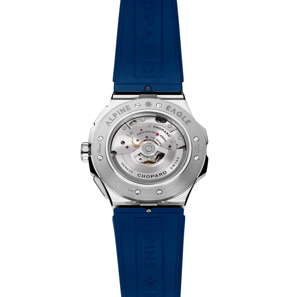 Đồng hồ Alpine Eagle kết hợp sự thể thao, sang trọng và chất liệu cao cấp. Vỏ và bộ máy được làm từ hợp kim Lucent Steel™ độc quyền, được phát triển trực tiếp bởi Chopard. Chất liệu tái chế và không gây dị ứng này nổi bật với độ sáng bóng và độ cứng tương đương vàng.