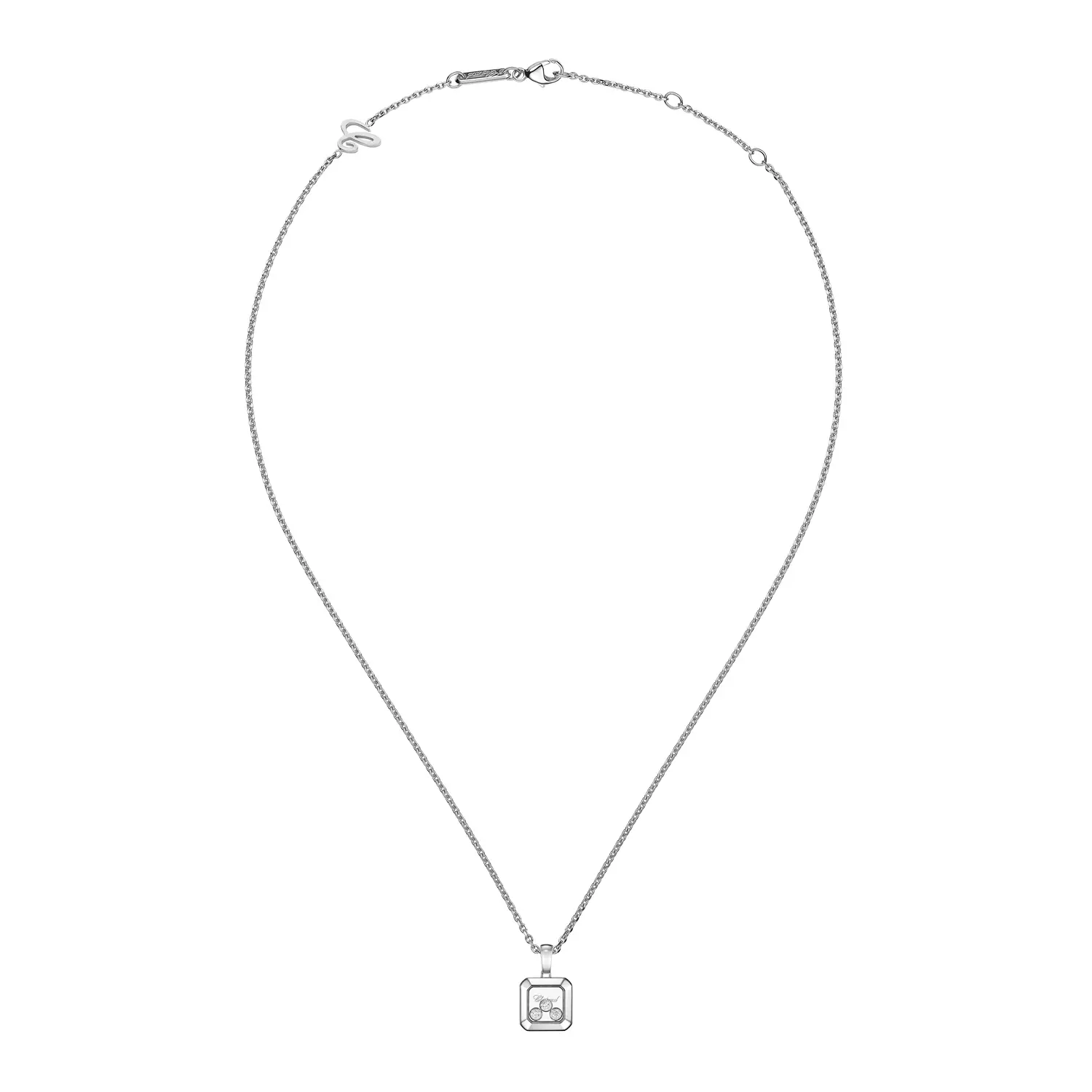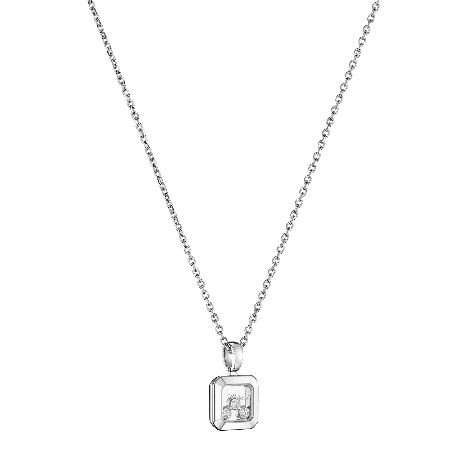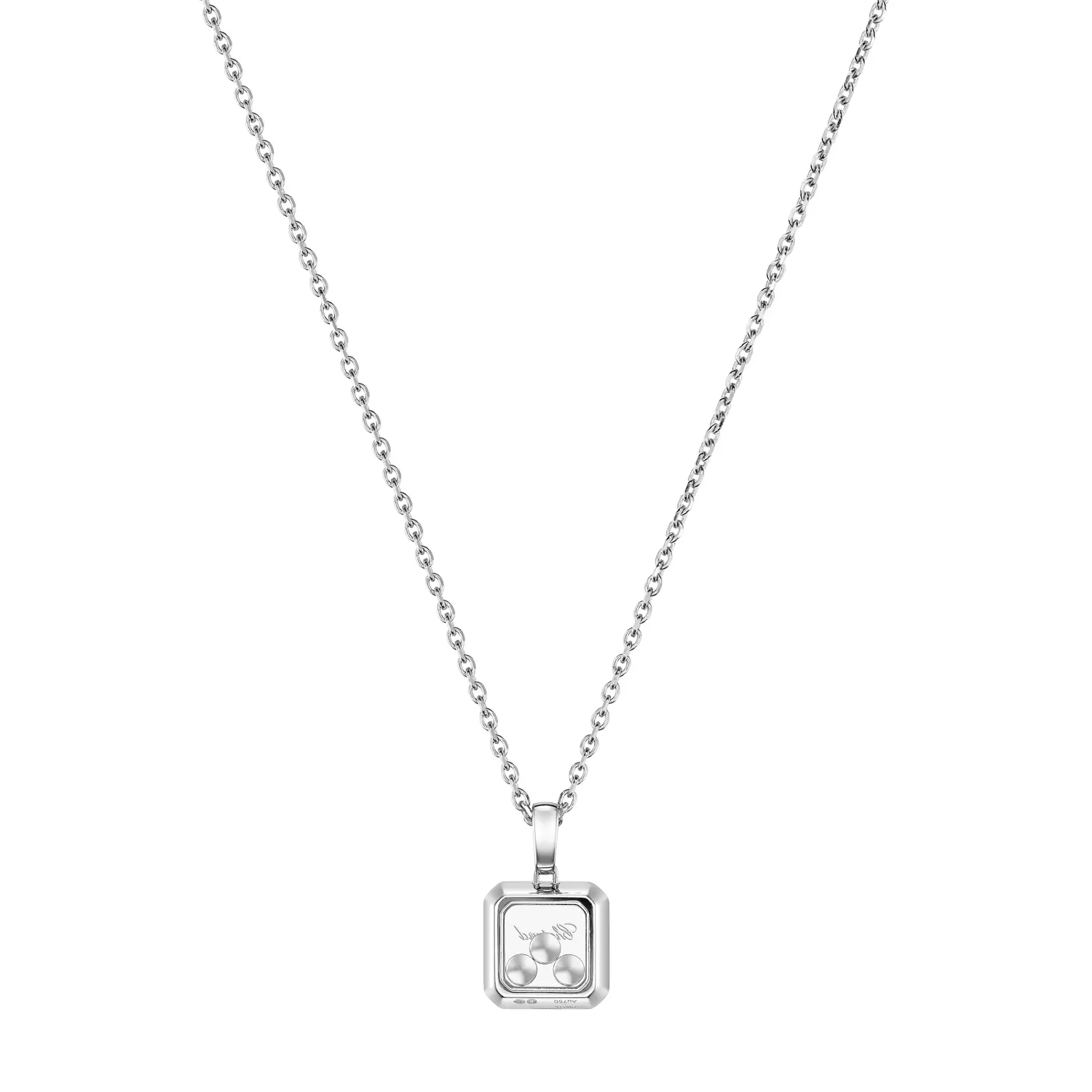 Chopard Happy Diamonds Icons 79A115‑1001 là mặt dây chuyền nữ sang trọng thuộc bộ sưu tập mang tính biểu tượng, tôn vinh niềm vui, tự do và vẻ đẹp trong chuyển động. Được chế tác từ vàng trắng 18K có nguồn gốc đạo đức, phần trung tâm chứa nhiều viên kim cương cắt sáng lấp lánh, tự do chuyển động giữa hai lớp kính sapphire – tạo nên hiệu ứng “kim cương nhảy múa” độc đáo.