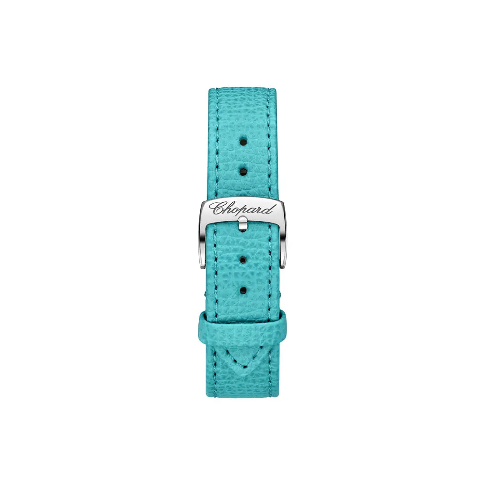 Bộ máy quartz Thụy Sĩ bên trong đảm bảo độ chính xác và sự thoải mái khi đeo. Mẫu đồng hồ được hoàn thiện với dây đeo da bê xanh có bề mặt satin và khóa thép. Khả năng chống nước đến 30 mét và sản xuất giới hạn 250 chiếc khiến nó trở thành một bảo vật sưu tập cũng như phụ kiện thời trang hàng ngày. Chopard Happy Fish là sự tôn vinh tự do, ánh sáng và vẻ đẹp nữ tính.