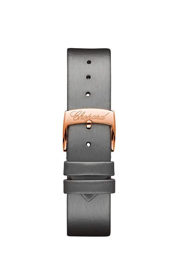 Bên trong là bộ máy cơ tự động Thụy Sĩ, biểu tượng cho độ chính xác và tay nghề của Chopard. Dây vải màu xám đậm mang lại vẻ hiện đại và thoải mái. Chopard Happy Sport 274808-5012 không chỉ là một chiếc đồng hồ – mà còn là một món trang sức thể hiện phong cách, sự thanh lịch và nghệ thuật chế tác đỉnh cao.