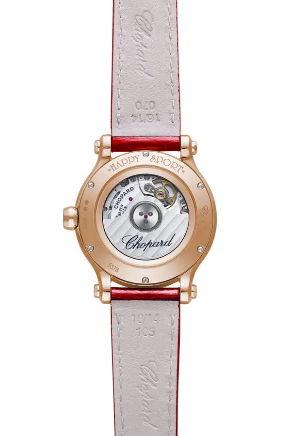 Bên trong là bộ máy cơ tự động CHOPARD 09.01-C với dự trữ năng lượng 42 giờ và 27 chân kính, nổi tiếng với độ chính xác và độ tin cậy cao. Mặt lưng trong suốt cho phép chiêm ngưỡng chi tiết bộ máy tuyệt đẹp. Với khả năng chống nước 30 mét, Chopard Happy Sport 275378-5005 không chỉ là đồng hồ, mà còn là một món trang sức biểu tượng cho niềm đam mê và phong cách của người phụ nữ hiện đại.