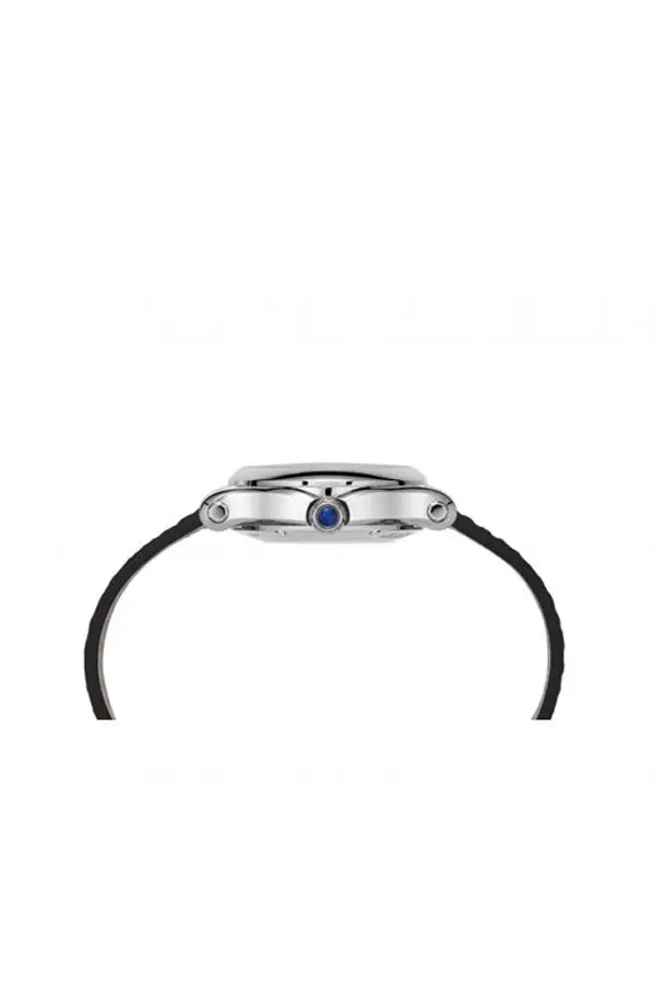 Vỏ tròn 30 mm bằng thép không gỉ với đường nét tinh giản, bảo vệ bởi mặt kính sapphire, lộ ra mặt số bạc lấp lánh cùng các viên kim cương chuyển động. Dây da cá sấu màu đen và khóa gài cổ điển hoàn thiện vẻ đẹp sang trọng, kín đáo.