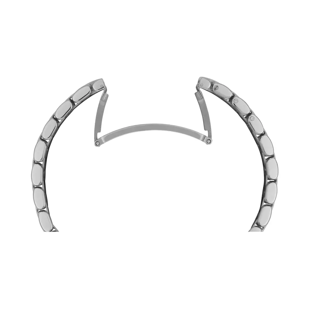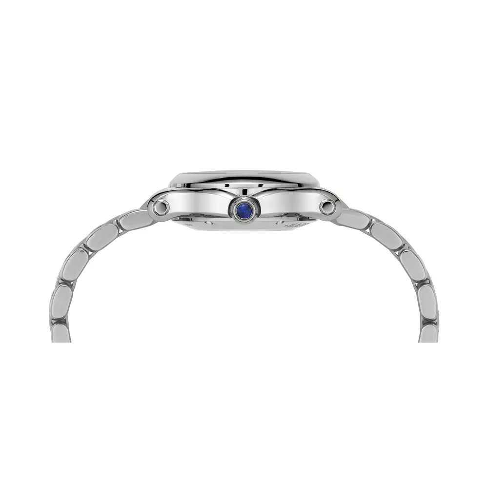 Vỏ thép không gỉ 30 mm mang đến sự bền bỉ, sáng bóng và phong cách hiện đại, kết hợp cùng vành thép cân đối hài hòa. Kính sapphire chống trầy bảo vệ mặt số màu bạc, nơi kim cương tự do chuyển động, tạo nên hiệu ứng ánh sáng đầy mê hoặc. Khả năng chống nước 30 m phù hợp cho sử dụng hàng ngày.