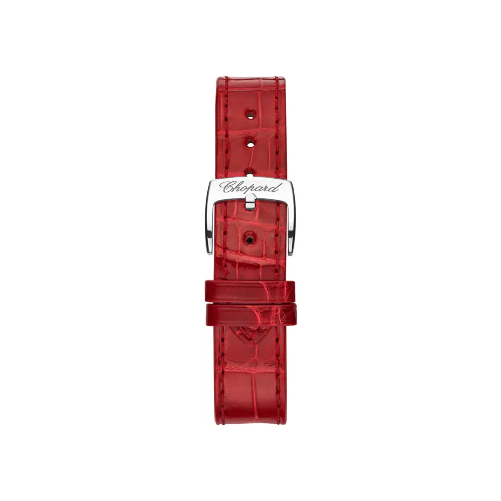 Chi tiết nổi bật chính là dây da cá sấu màu đỏ, táo bạo, quyến rũ và vẫn giữ được nét thanh lịch. Khóa gài cổ điển mang lại sự chắc chắn và thoải mái khi đeo.