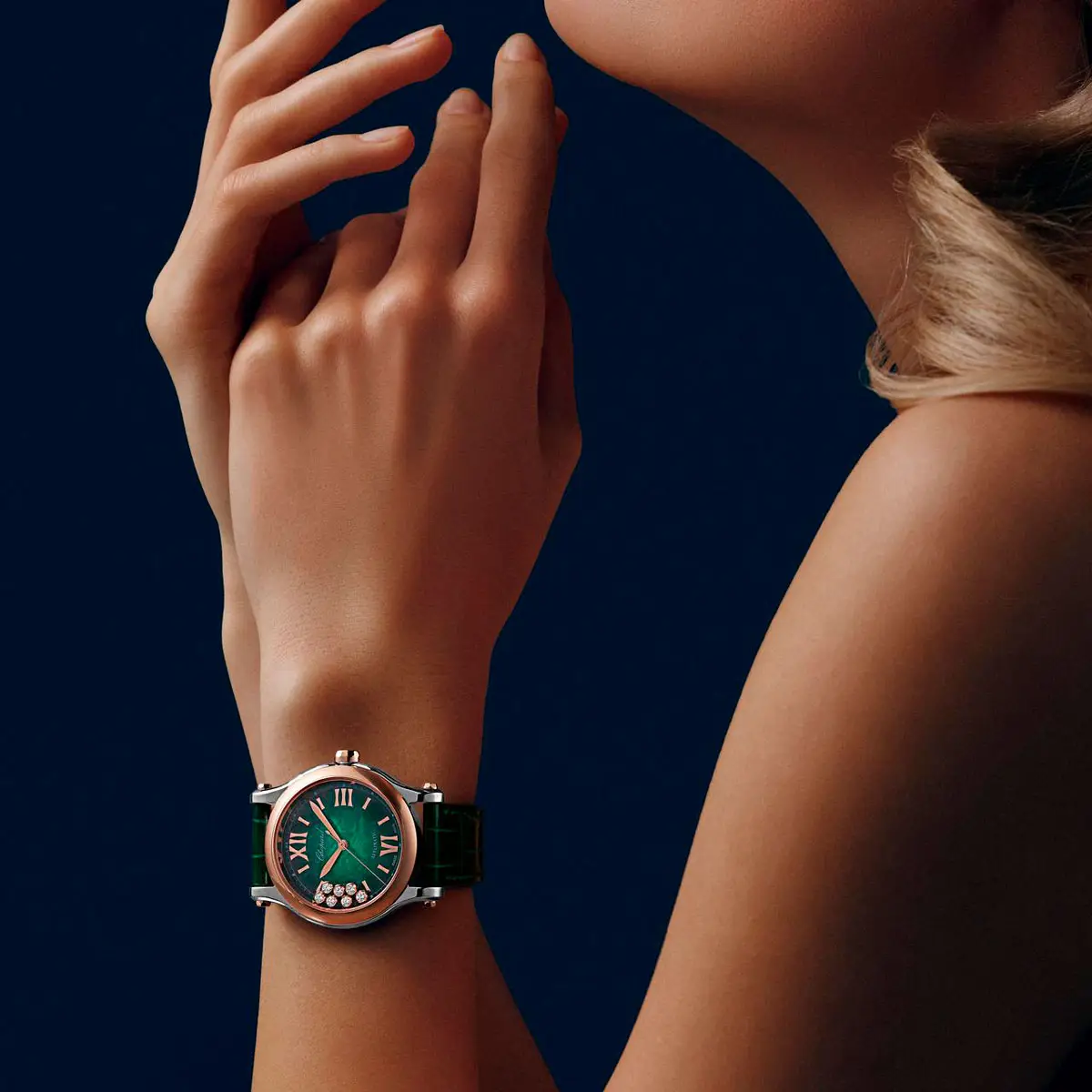 Happy Sport là sự kết hợp hài hòa giữa sự tinh tế vui tươi, độ chính xác của nghệ thuật chế tác đồng hồ Thụy Sĩ và kỹ thuật chế tác trang sức - những chiếc đồng hồ thể hiện sức mạnh, phong cách và sự tinh tế của người phụ nữ hiện đại.