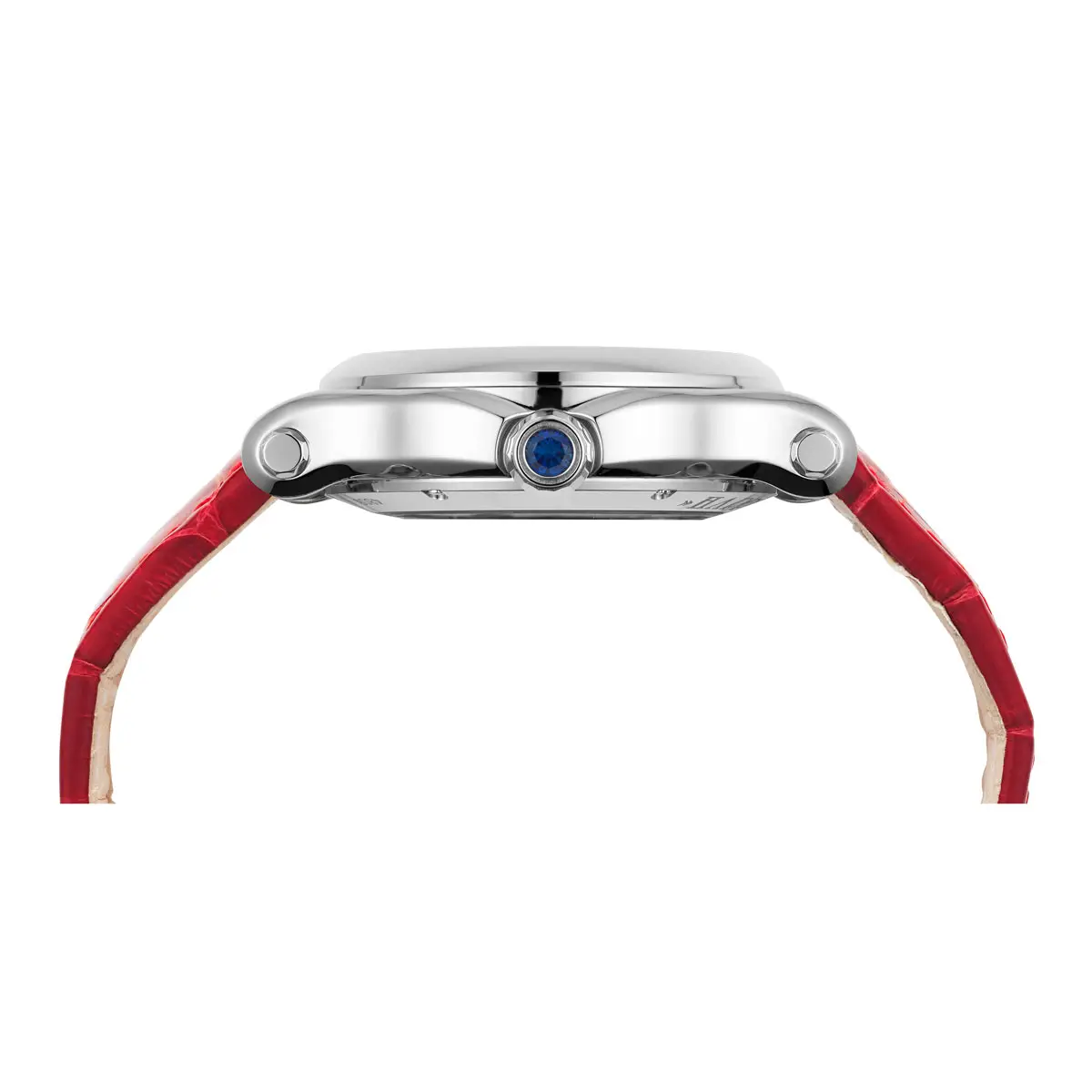 Điểm nhấn đặc trưng của mẫu đồng hồ này là dây đeo da cá sấu màu đỏ, mang vẻ độc đáo, gợi cảm nhưng vẫn vô cùng sang trọng. Khóa gài gai đảm bảo sự chắc chắn và thoải mái khi đeo.