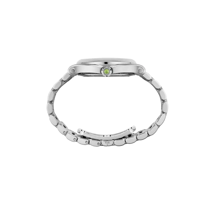Vỏ và dây đeo bằng thép không gỉ được đánh bóng mang lại vẻ ngoài tinh tế, thanh lịch nhưng vẫn năng động. Trên mặt số màu bạc, bảy viên kim cương “dancing diamonds” di chuyển tự do giữa hai lớp kính sapphire, tạo hiệu ứng ánh sáng cuốn hút. Kính sapphire phủ chống phản chiếu giúp bảo vệ và đảm bảo độ trong suốt vượt trội.