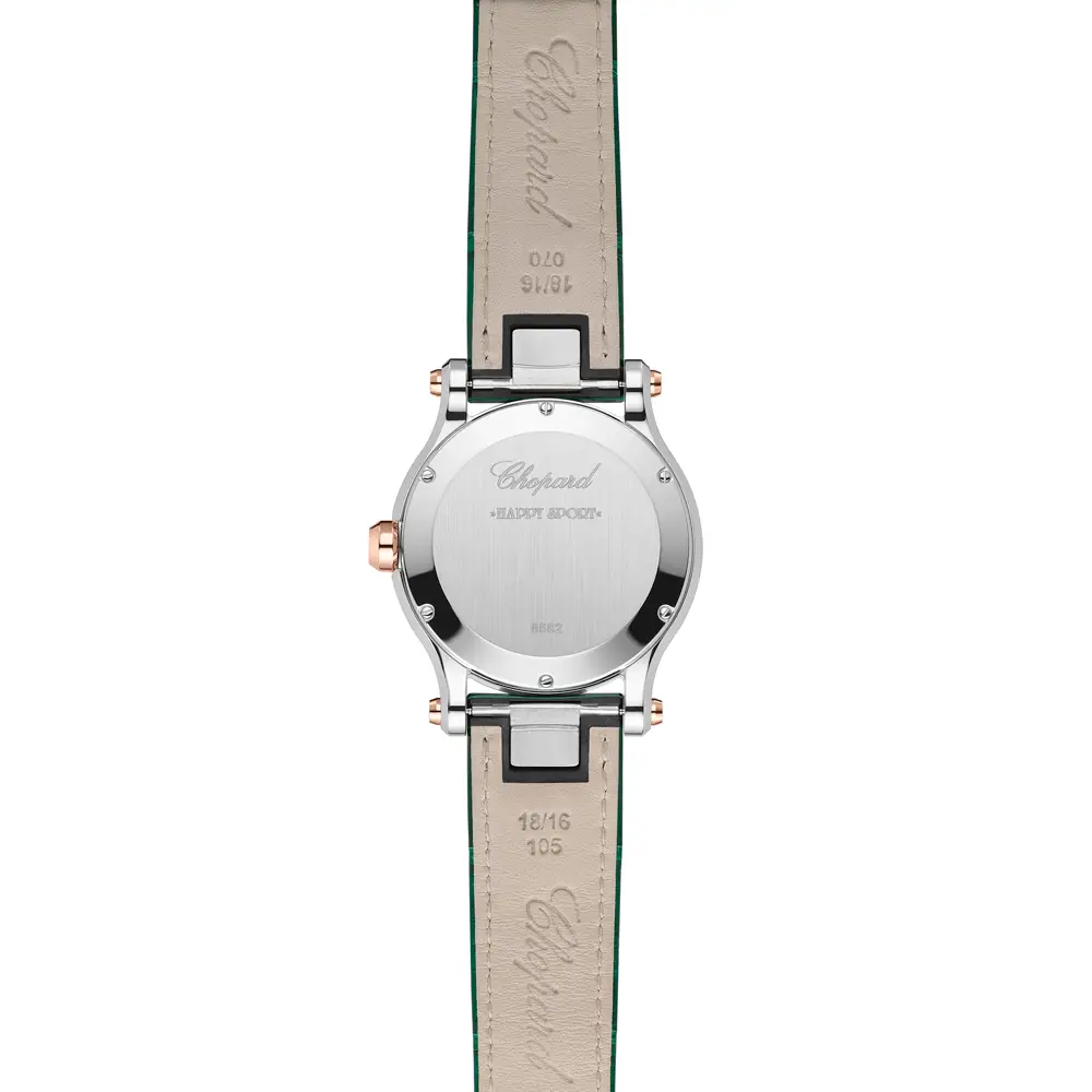 Táo bạo, tươi mới và đầy cuốn hút – Chopard Happy Sport 278582-6005 là lựa chọn hoàn hảo cho người phụ nữ hiện đại yêu thích sự thanh lịch pha lẫn cá tính. Vỏ tròn 36 mm bằng thép không gỉ kết hợp cùng viền vàng hồng 18K, tạo nên vẻ sang trọng ấm áp.