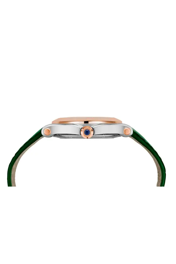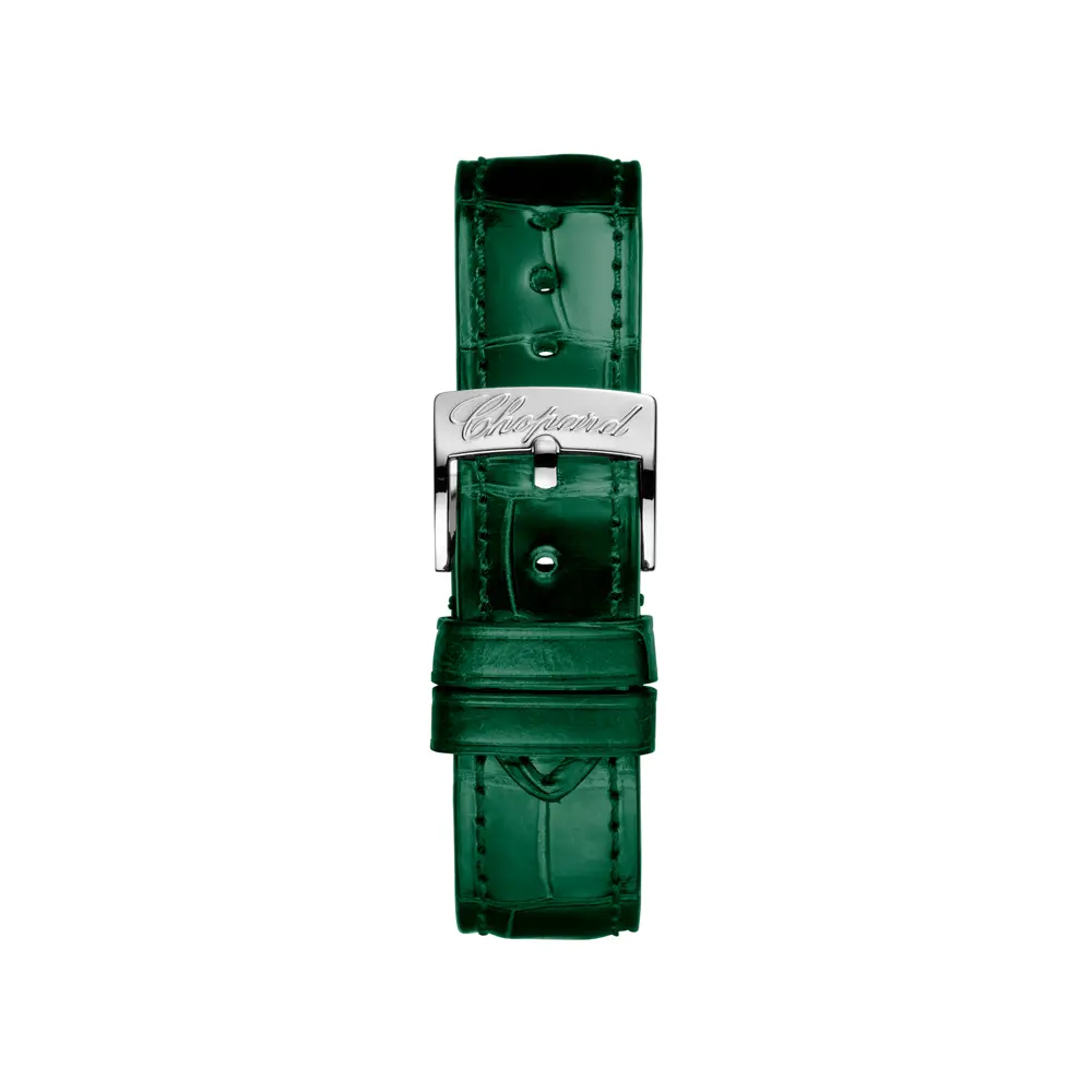 Dây đeo bằng da cá sấu xanh lá cùng khóa gài cổ điển mang lại sự thoải mái và phong cách nổi bật.