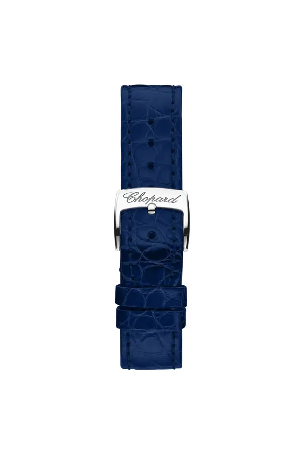 Dây da cá sấu màu xanh cùng khóa gài cổ điển hoàn thiện thiết kế sang trọng. Bên trong là bộ máy quartz Thụy Sĩ, đảm bảo độ chính xác tuyệt đối và dễ dàng bảo dưỡng. Chopard Happy Sport 278582-6012 là sự kết hợp hoàn hảo giữa tính năng, phong cách và vẻ đẹp nữ tính, thể hiện trọn vẹn tinh thần của bộ sưu tập Happy Sport.