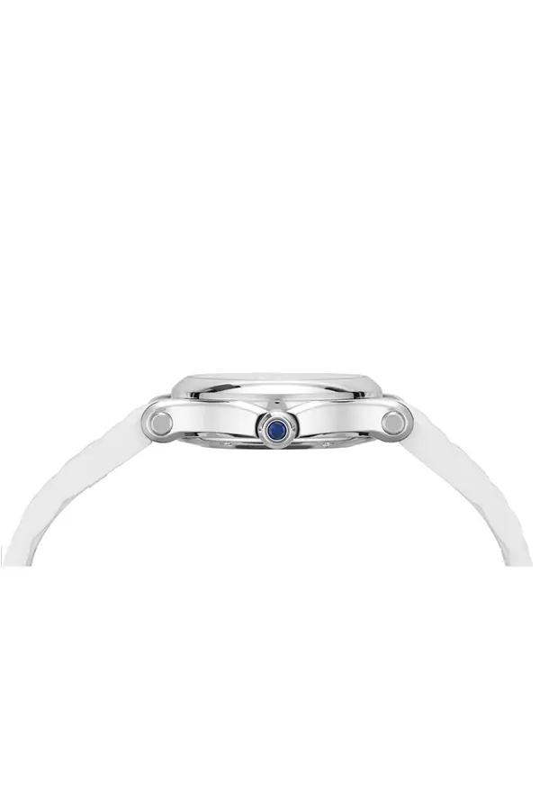 Vỏ tròn 30 mm bằng thép không gỉ kết hợp cùng vành bezel bằng thép, tạo nên sự tối giản tinh tế. Bên dưới mặt kính sapphire, mặt số màu bạc nổi bật với những viên kim cương chuyển động tự do, lấp lánh theo từng chuyển động tay.