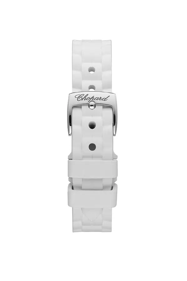 Dây đeo cao su màu trắng mang lại cảm giác thoải mái và phong cách thể thao hiện đại. Khóa gài cổ điển đảm bảo chắc chắn và dễ sử dụng.