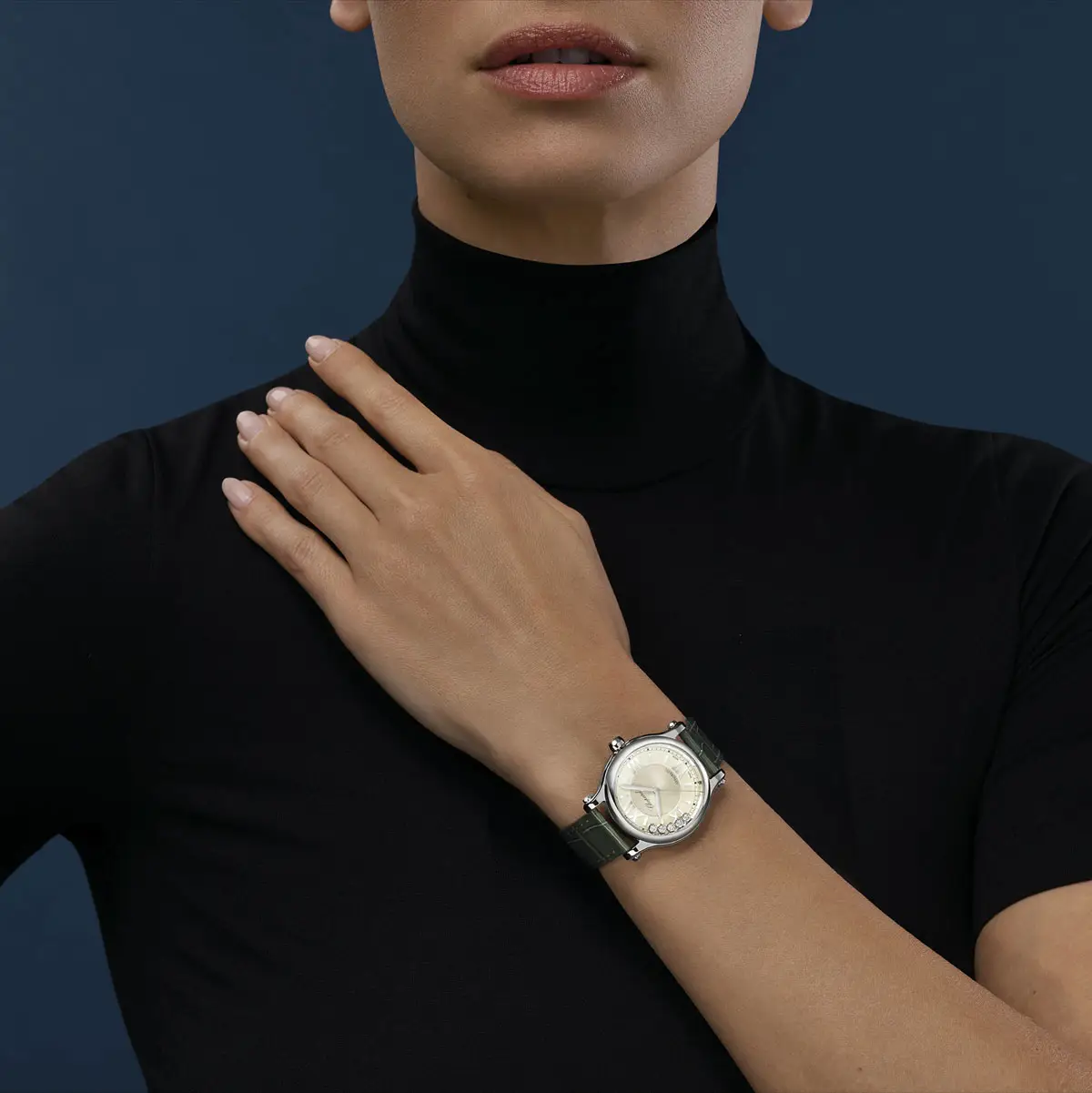 Happy Sport là sự kết hợp hài hòa giữa sự tinh tế vui tươi, độ chính xác của nghệ thuật chế tác đồng hồ Thụy Sĩ và kỹ thuật chế tác trang sức - những chiếc đồng hồ thể hiện sức mạnh, phong cách và sự tinh tế của người phụ nữ hiện đại.