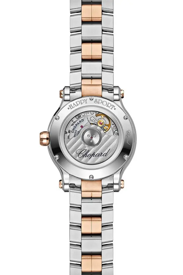 Chiếc đồng hồ Chopard Happy Sport 278608-6002 nổi bật với thiết kế kết hợp thép không gỉ và vàng hồng 18kt, tạo nên vẻ đẹp dịu dàng nhưng hiện đại qua mặt số tròn 33 mm.