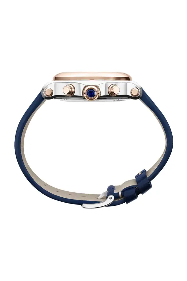 Vỏ tròn 40 mm bằng thép không gỉ đánh bóng, bao quanh bởi vành bezel bằng vàng hồng 18kt. Mặt kính sapphire bảo vệ mặt số màu bạc với các viên kim cương chuyển động tự do, phản chiếu ánh sáng ở mọi cử động.