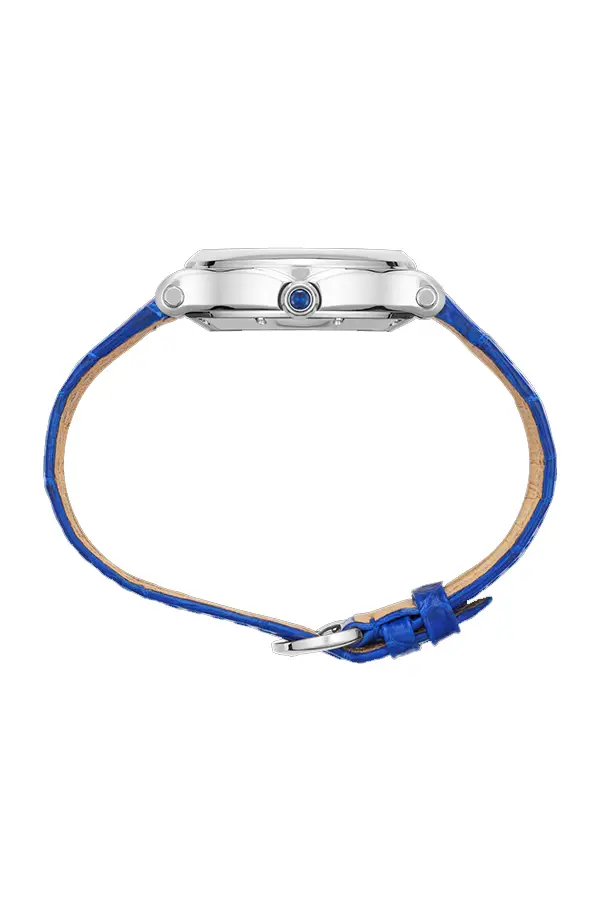 Dây da cá sấu màu xanh là điểm nhấn thời trang, mang lại sự nổi bật và sang trọng. Khóa cài kiểu truyền thống đảm bảo cảm giác đeo chắc chắn và thoải mái.