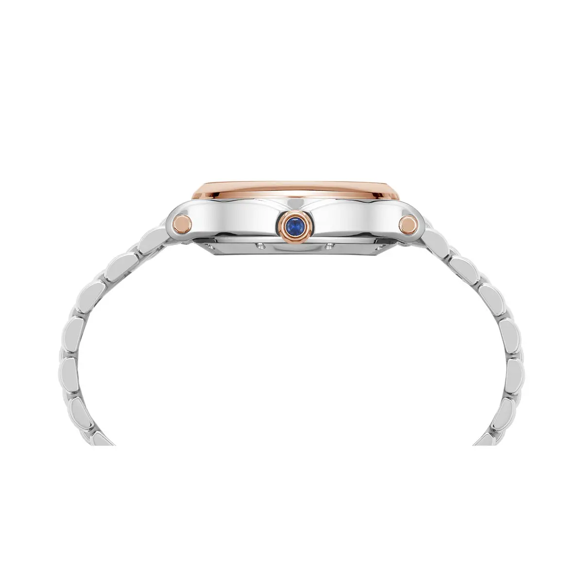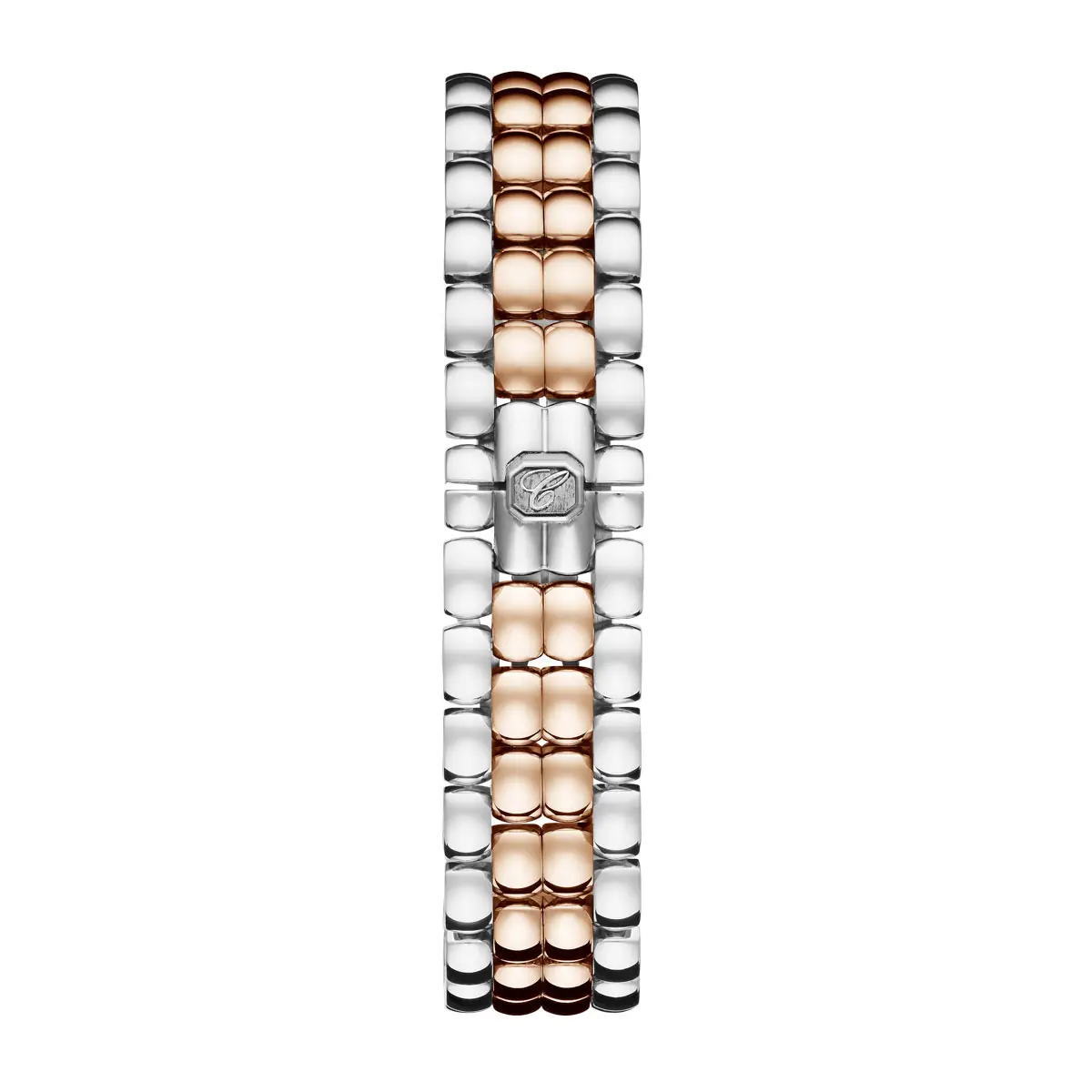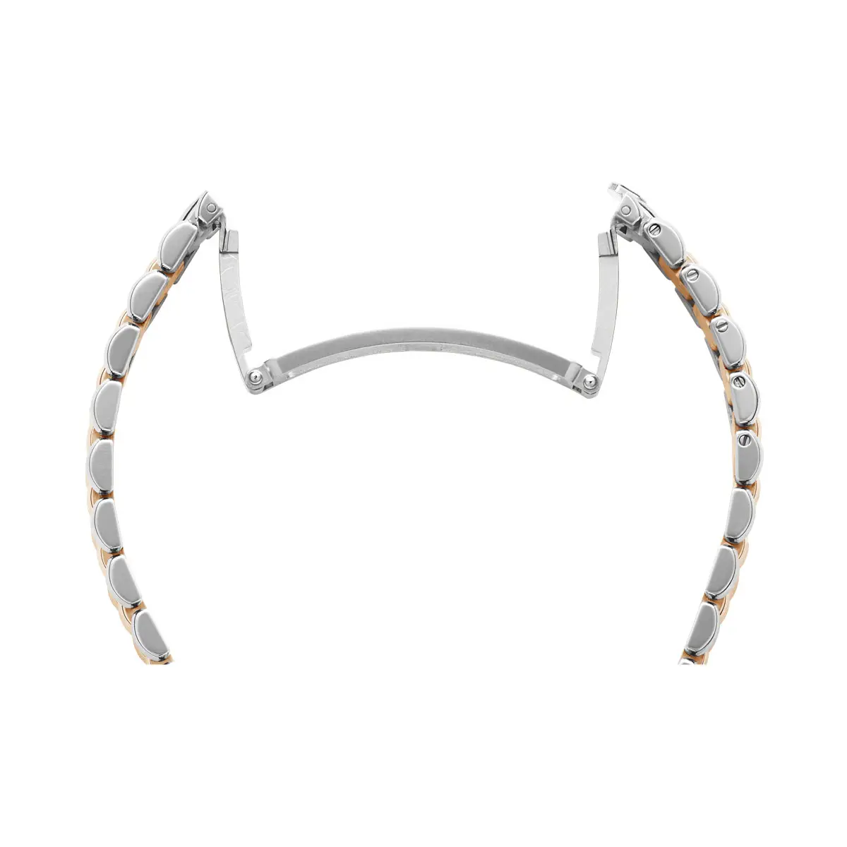 Dây đeo hai tông màu (bicolor) kết hợp thép không gỉ và vàng hồng 18kt, tạo nên diện mạo sang trọng và hiện đại. Khóa gập vừa tiện lợi, vừa tăng tính thẩm mỹ cho toàn bộ thiết kế.