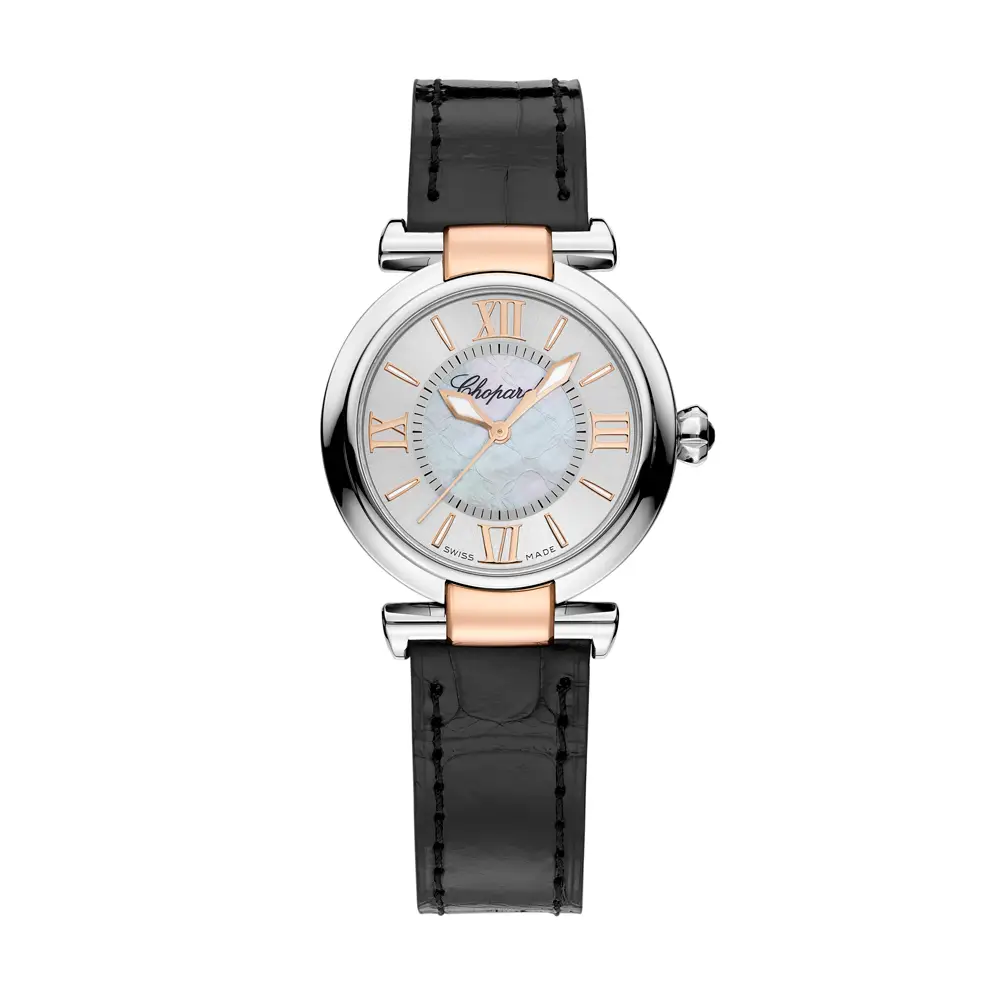 Bộ sưu tập Imperiale củaChopard thể hiện sự tinh tế, nữ tính và vẻ đẹp vượt thời gian, lấy cảm hứng từ sự hùng vĩ của các đế chế cổ đại. Chiếc đồng hồ này được thiết kế dành cho những phụ nữ có gu thẩm mỹ tinh tế, đánh giá cao sự kết hợp giữa thẩm mỹ tinh xảo và kỹ thuật chế tác đồng hồ chính xác.