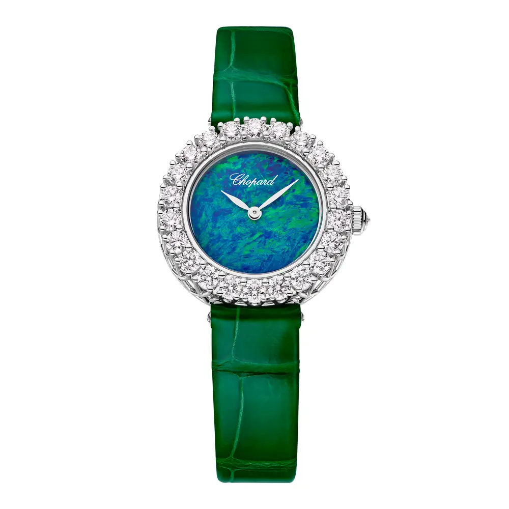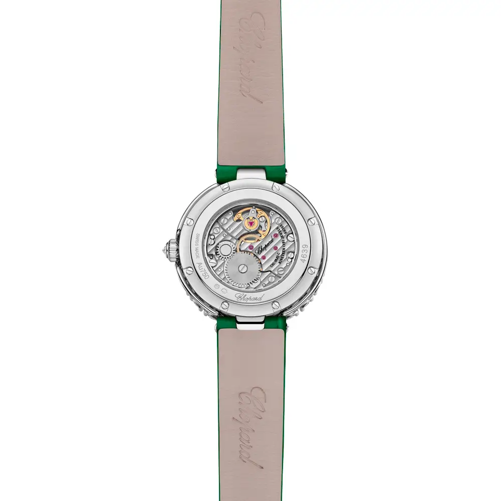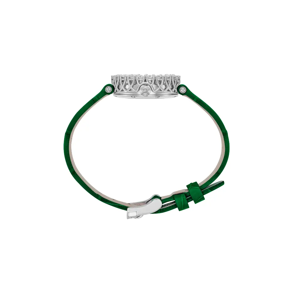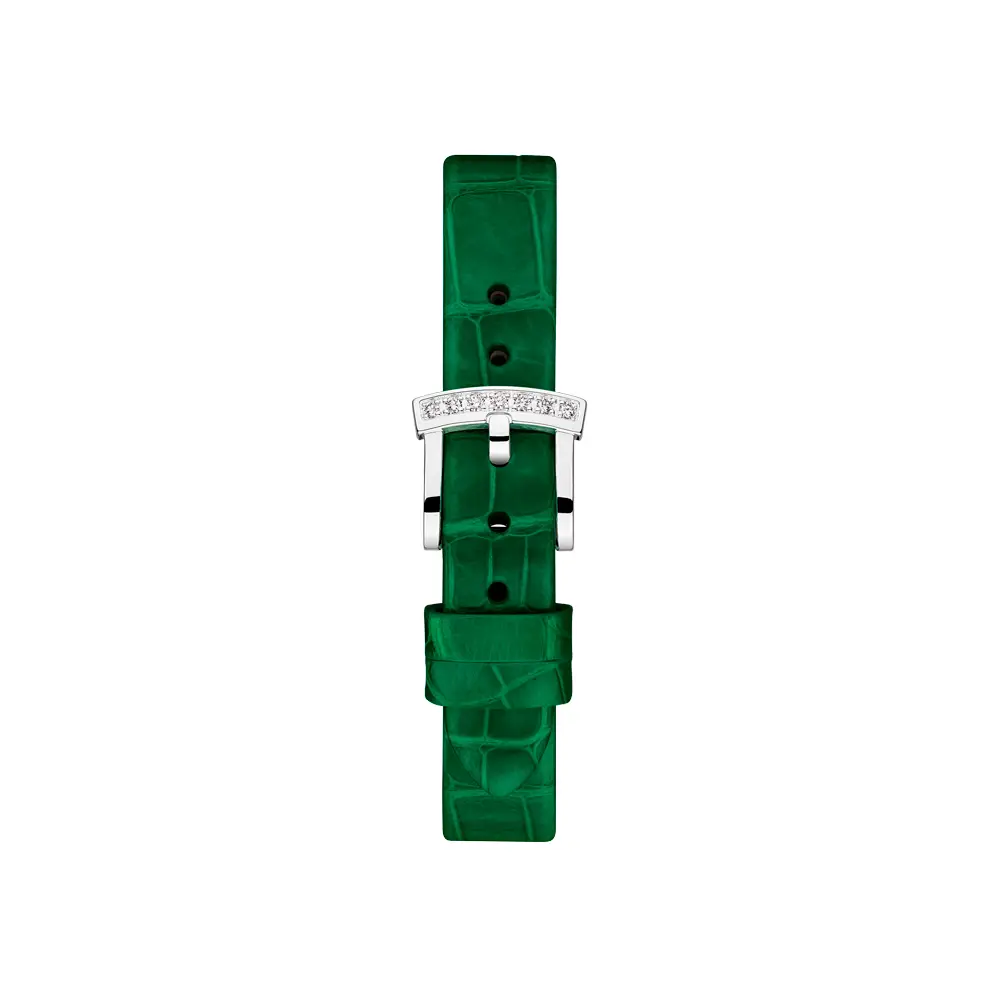Hoàn thiện vẻ đẹp tổng thể là dây da màu xanh lá ánh bóng, tạo điểm nhấn tươi mới và hiện đại giữa sắc trắng của vàng và ánh sáng của kim cương. Sự tương phản tinh tế này mang lại nét cá tính riêng biệt. L'Heure du Diamant Round 13A178-1316 là một tác phẩm trang sức biểu tượng cho vẻ đẹp vĩnh cửu và sự thanh lịch của phái nữ.