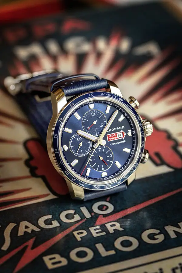 Bộ sưu tập Mille Migliacủa Chopard là sự tôn vinh cuộc đua xe cổ điển huyền thoại đã diễn ra từ năm 1927 trên cung đường 1.000 dặm xuyên Italy. Chopard đã là đối tác chính thức và nhà tài trợ thời gian của cuộc đua từ năm 1988, và bộ sưu tập mang tên Mille Miglia như một lời tri ân cho sự kết hợp giữa cơ khí, sự sang trọng và hiệu suất.