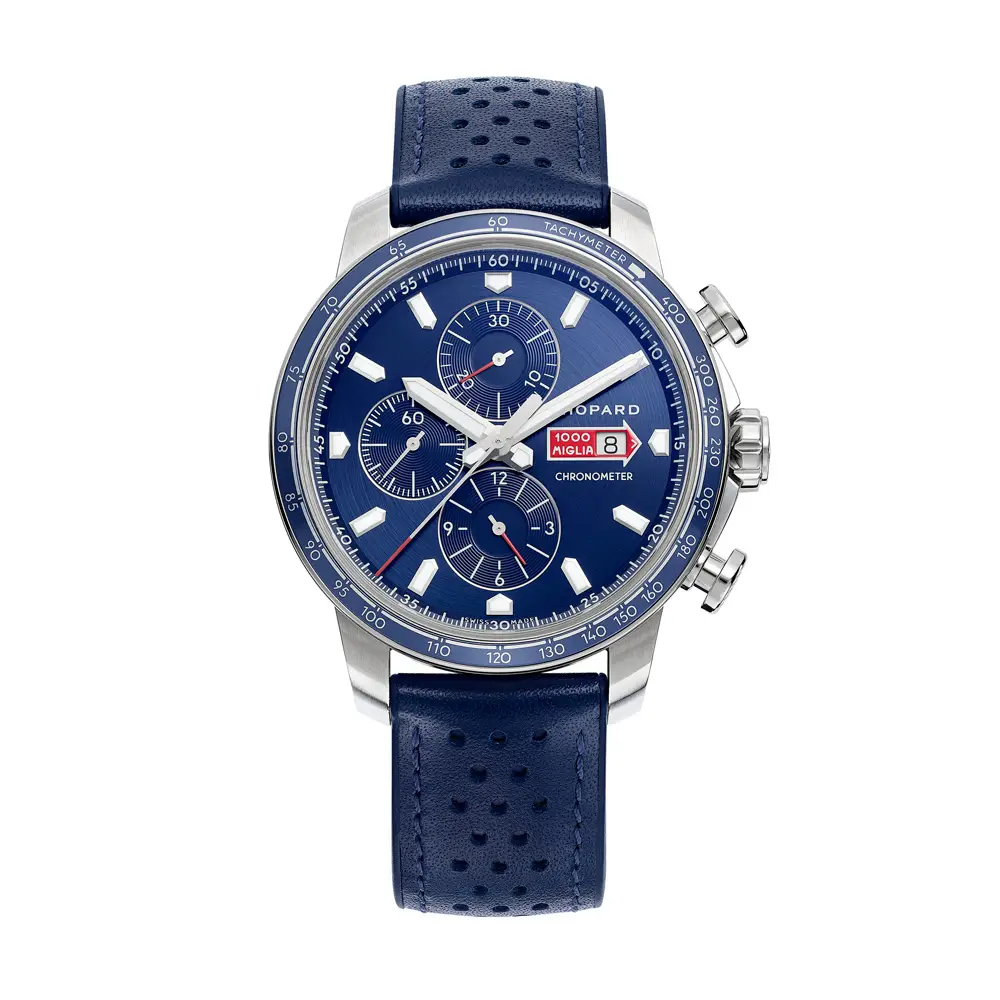 Chopard Mille Miglia GT Azzurro Chrono là chiếc đồng hồ dành cho người đàn ông hiện đại, yêu thích di sản đua xe, thiết kế sang trọng và công nghệ Thụy Sĩ đỉnh cao.