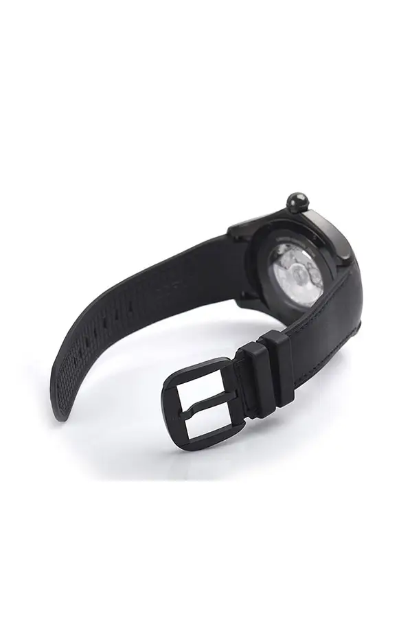 Khả năng chống nước 10 ATM / 100 mét, phù hợp cho cả sử dụng hàng ngày lẫn các hoạt động giải trí. Tổng thể được hoàn thiện bởi dây đeo da đen thanh lịch với khóa chốt kim cổ điển.