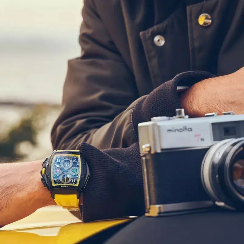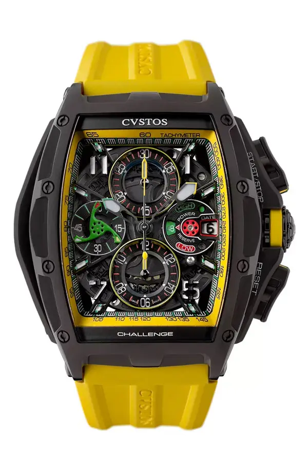 Đồng hồ thể thao nam Cvstos thuộc bộ sưu tập Challenge là sự kết hợp hoàn hảo giữa thiết kế kỹ thuật tinh tế và phong cách mới mẻ, được thiết kế đặc biệt dành cho những quý ông không ngại nổi bật giữa đám đông. Dây đeo màu vàng nổi bật tương phản hoàn hảo với vỏ thép đen và lớp phủ PVD đen. Mặt số hình vuông trang bị chức năng bấm giờ và hiển thị ngày.