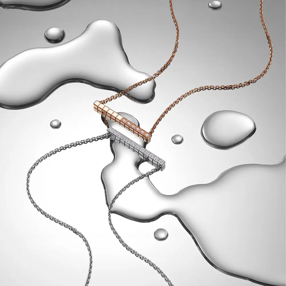 Lấy cảm hứng từ hình khối lập phương, thiết kế tượng trưng cho sự hoàn hảo và hài hòa. Mỗi mắt xích vàng như viên băng tinh khiết phản chiếu ánh sáng rực rỡ — minh chứng cho tay nghề thủ công Thụy Sĩ và phong cách hiện đại của Chopard.