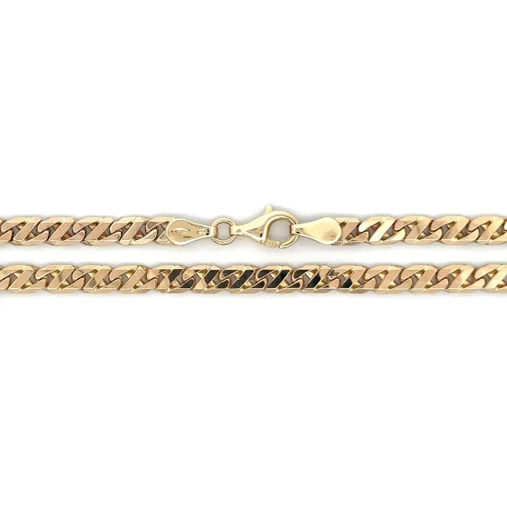 Chiếc dây chuyền Gucci sang trọng này được chế tác từ vàng vàng 14K (585/1000), nổi bật với thiết kế đặc trưng cùng các mắt xích được đánh bóng tinh xảo. Với chiều dài 51 cm và bản rộng 4,50 mm, nó mang lại vẻ đẹp mạnh mẽ nhưng vẫn thanh lịch, phù hợp cho cả nam và nữ.