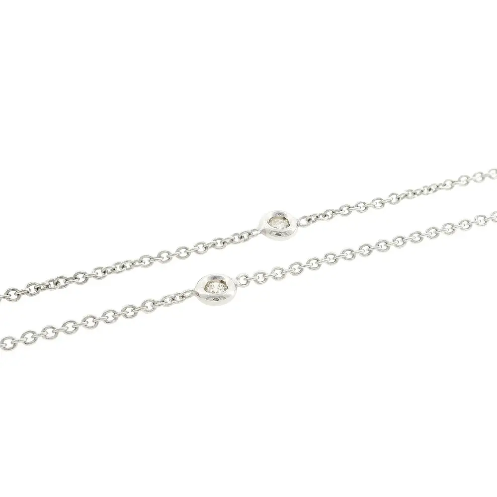 Dây chuyền kim cương thanh lịch gây ấn tượng với thiết kế tinh tế và vượt thời gian. Dây chuyền được trang trí bằng kim cương tự nhiên tổng trọng lượng 0,14 ct, được gắn cách đều trên dây để tạo nên hiệu ứng lấp lánh nhẹ nhàng khi chuyển động. Thiết kế tối giản mang lại vẻ đẹp thanh lịch và dễ dàng kết hợp với các món trang sức khác.