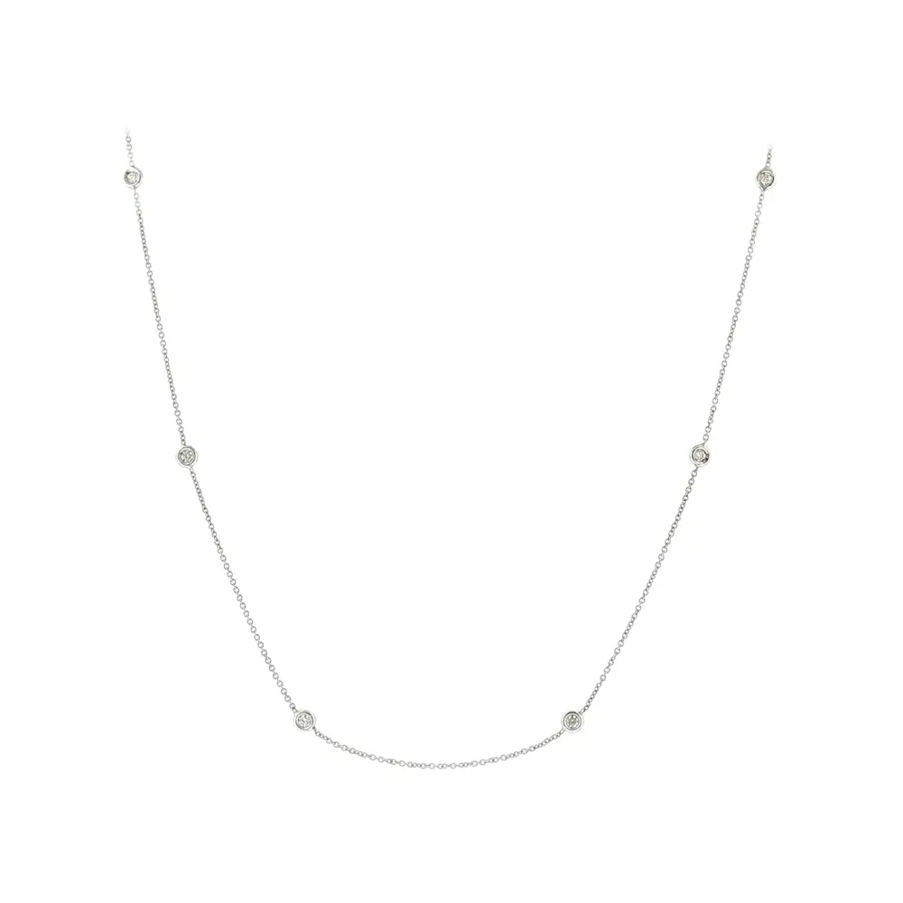 Dây chuyền kim cương thanh lịch gây ấn tượng với thiết kế tinh tế và vượt thời gian. Dây chuyền được trang trí bằng kim cương tự nhiên tổng trọng lượng 0,25 ct, được gắn cách đều trên dây để tạo nên hiệu ứng lấp lánh nhẹ nhàng khi chuyển động. Thiết kế tối giản mang lại vẻ đẹp thanh lịch và dễ dàng kết hợp với các món trang sức khác.