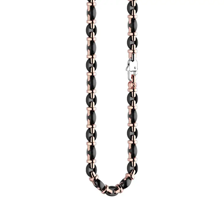 Dây chuyền nam Zancan với chi tiết gốm kết hợp thẩm mỹ bicolor hiện đại và chế tác Ý chuẩn xác. Nổi bật với vàng 18kt (750/1000) hai tông trắng & hồng (bicolor), hoàn thiện đánh bóng, mang đến vẻ tinh tế, nam tính. Chiều dài 60 cm cân đối, đeo đơn lẻ hoặc layer cùng phụ kiện khác đều đẹp.