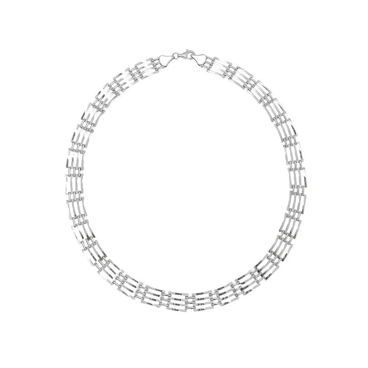 Chiếc vòng cổ nữ này là biểu tượng của vẻ đẹp thanh lịch tối giản kết hợp cùng tay nghề chế tác tinh xảo. Trang sức được làm từ vàng trắng 14kt (585/1000) với bề mặt đánh bóng, mang đến ánh sáng mượt mà và phong cách sang trọng vượt thời gian. Thiết kế cân đối với đường nét tinh tế làm tôn lên chất lượng vật liệu và sự tỉ mỉ trong từng chi tiết.