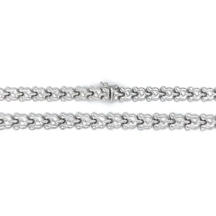 Chiếc vòng cổ nữ này được chế tác tinh xảo từ vàng trắng 14K 585/1000 với bề mặt đánh bóng sáng, phản chiếu ánh sáng tự nhiên và mang đến vẻ đẹp thanh lịch. Với chiều dài 42,5 cm, vòng cổ nằm nhẹ nhàng trên cổ, tôn lên đường nét xương quai xanh. Thiết kế tối giản và cân đối biểu đạt sự tinh tế vượt thời gian.