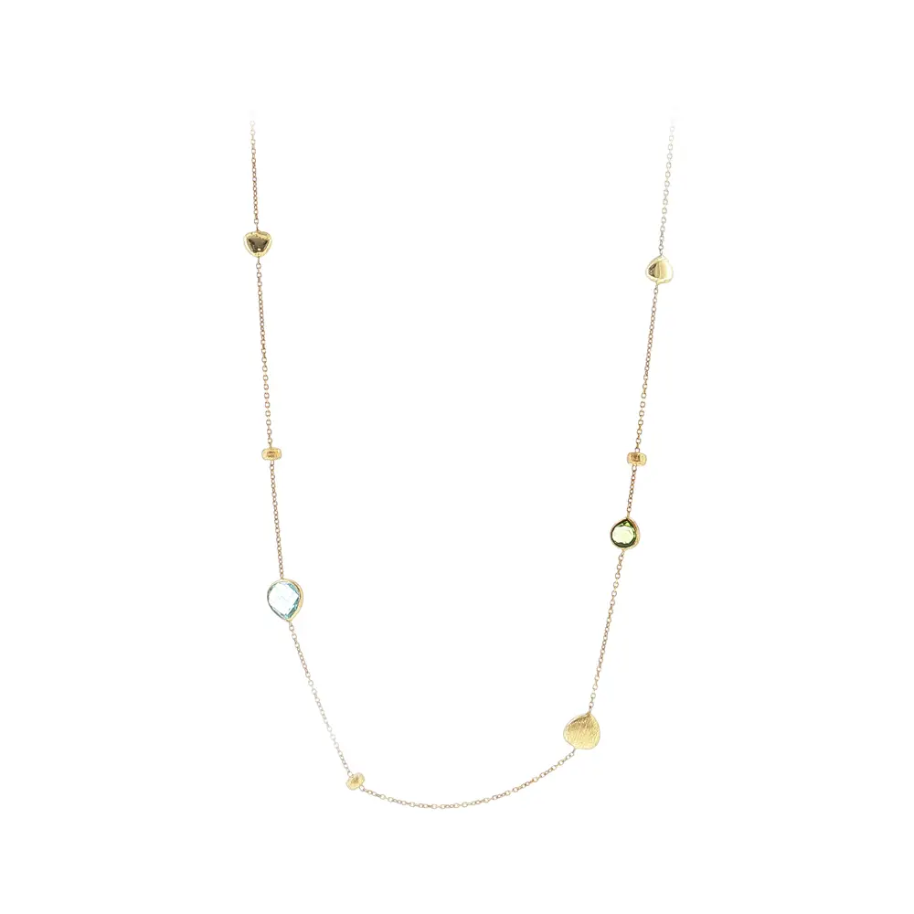 Dây chuyền vàng 14K thanh lịch với đá nhiều màu và họa tiết trái tim là món trang sức độc đáo, nổi bật với thiết kế nhẹ nhàng và đầy tinh tế. Sự kết hợp giữa vàng 14K thật, những viên đá nhiều màu sắc và chi tiết trái tim nhỏ tạo nên một phụ kiện nổi bật cho mọi trang phục.