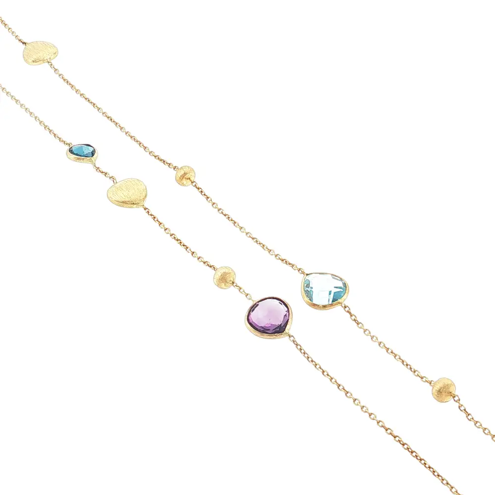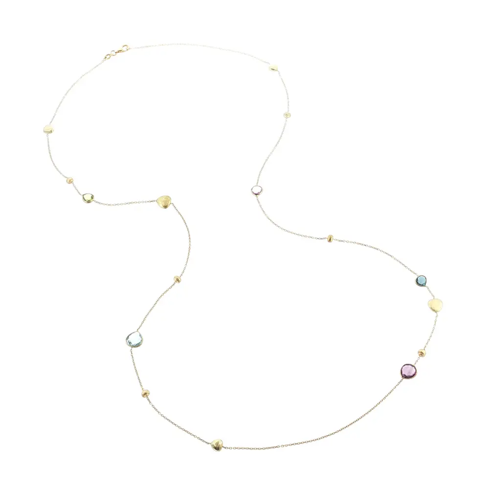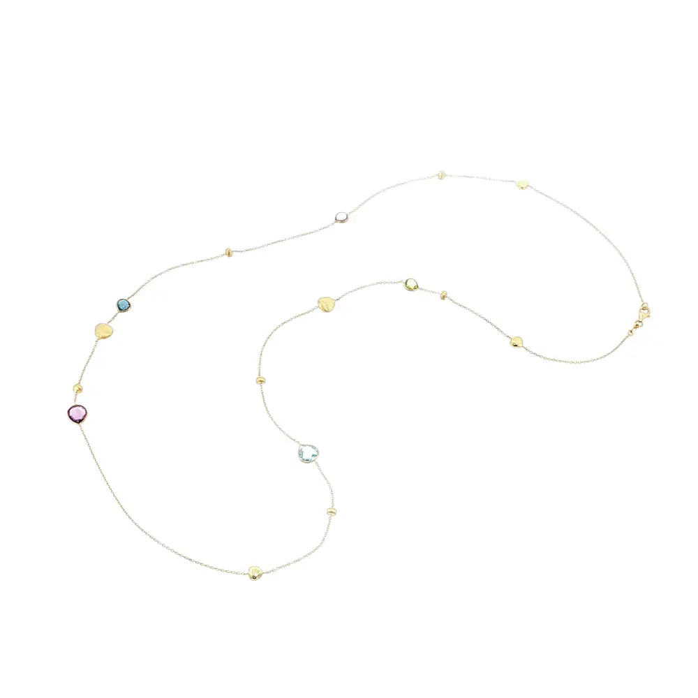 Dây chuyền vàng 14K thanh lịch với đá nhiều màu và họa tiết trái tim