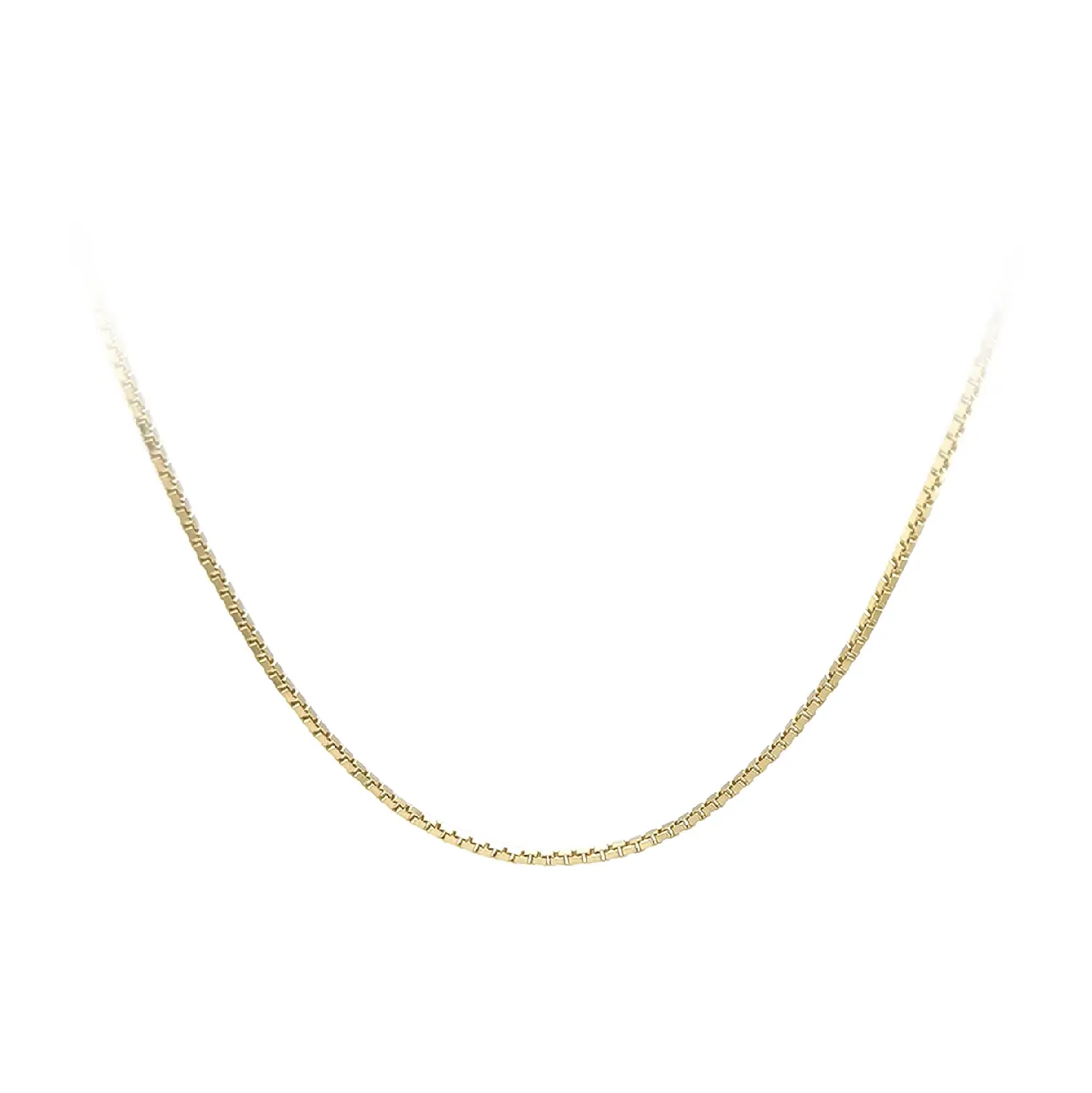 Dây chuyền Box nổi bật nhờ cấu trúc tinh xảo từ các mắt xích vuông nhỏ, tạo nên đường nét mượt mà, chắc chắn cùng ánh sáng thanh lịch. Thiết kế tối giản mang lại vẻ đẹp sạch sẽ, hiện đại và phù hợp cho cả phong cách hằng ngày lẫn trang trọng.