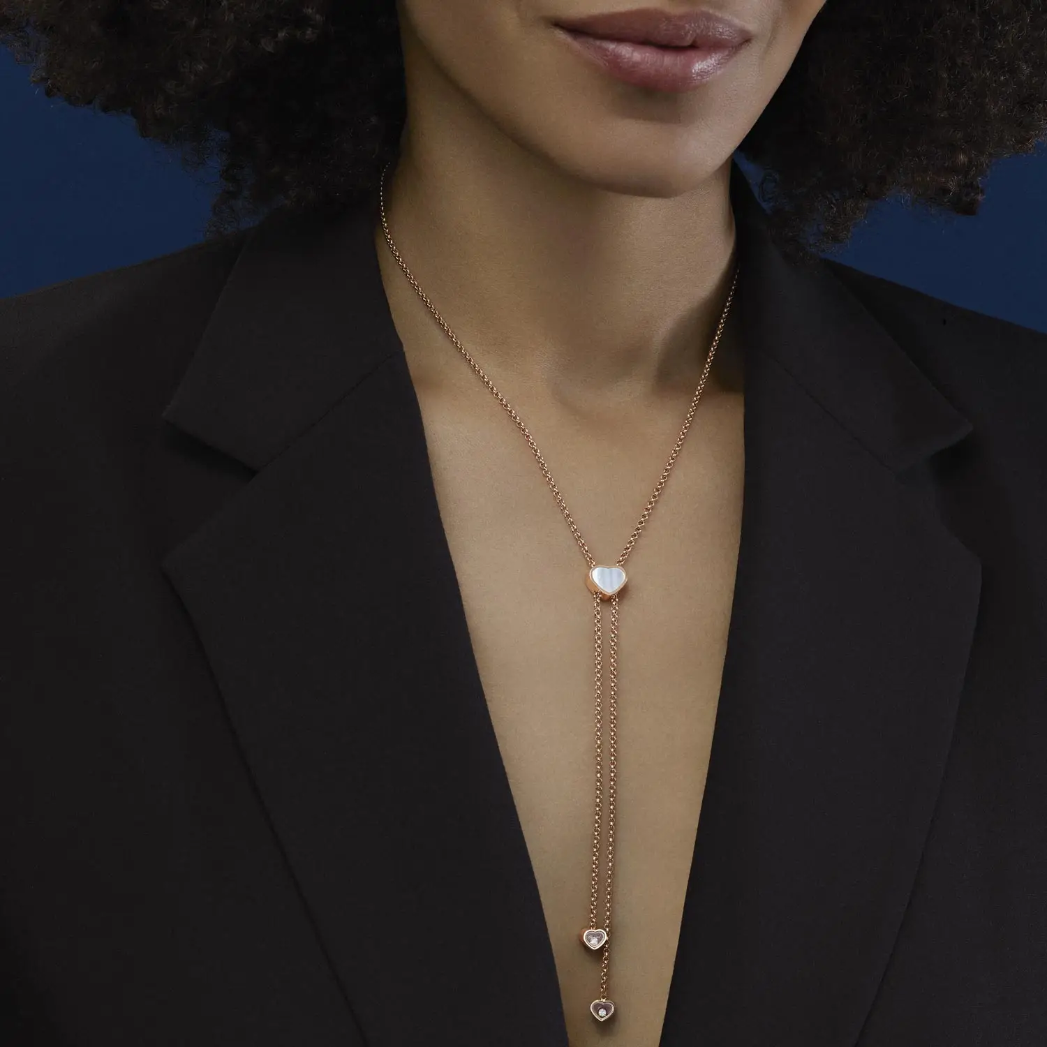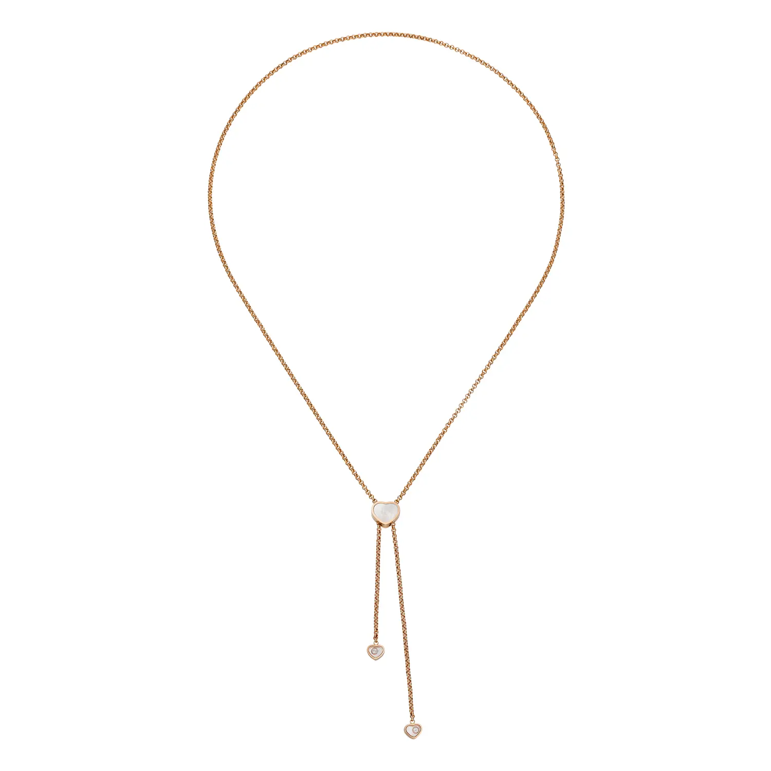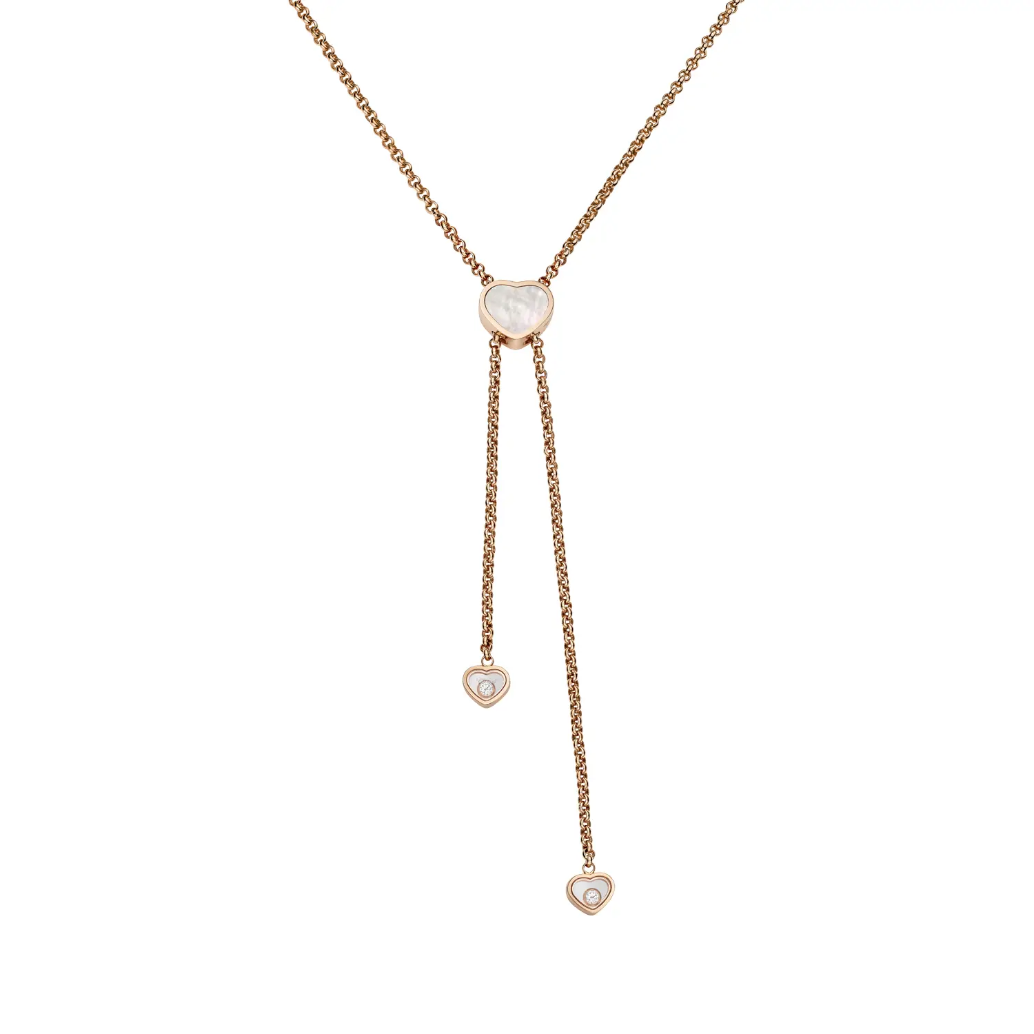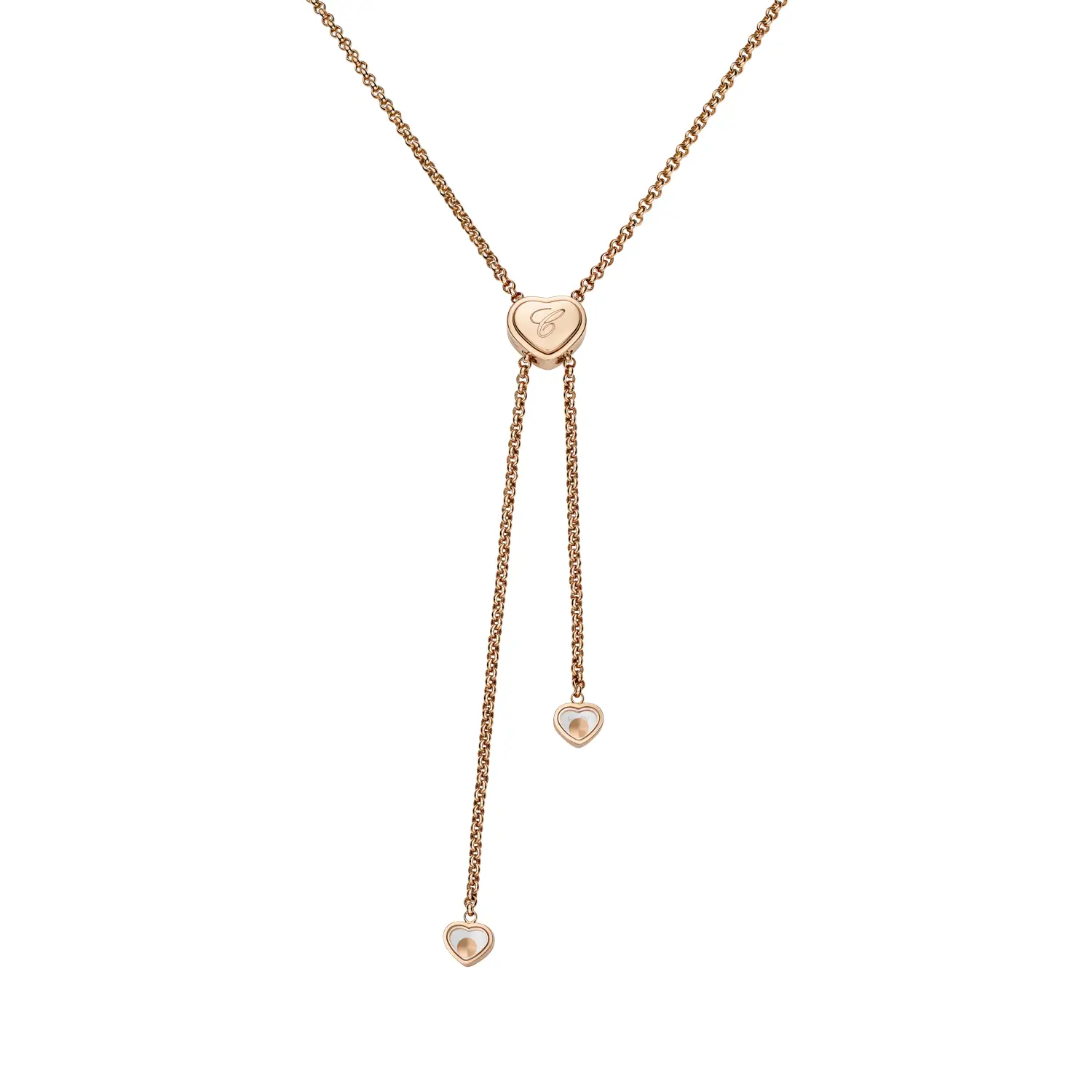 Chiếc dây chuyền sang trọng từ bộ sưu tập Happy Hearts thể hiện vẻ đẹp thanh lịch cùng kỹ nghệ chế tác tinh xảo của Thụy Sĩ. Vàng 18K được đánh bóng tạo thành sợi dây mảnh, kết hợp biểu tượng trái tim đặc trưng – đại diện cho niềm vui, sự tinh nghịch và năng lượng sống, đặc trưng của dòng Happy Hearts. Thiết kế mang lại cảm giác nhẹ nhàng, nữ tính và đầy tinh tế.