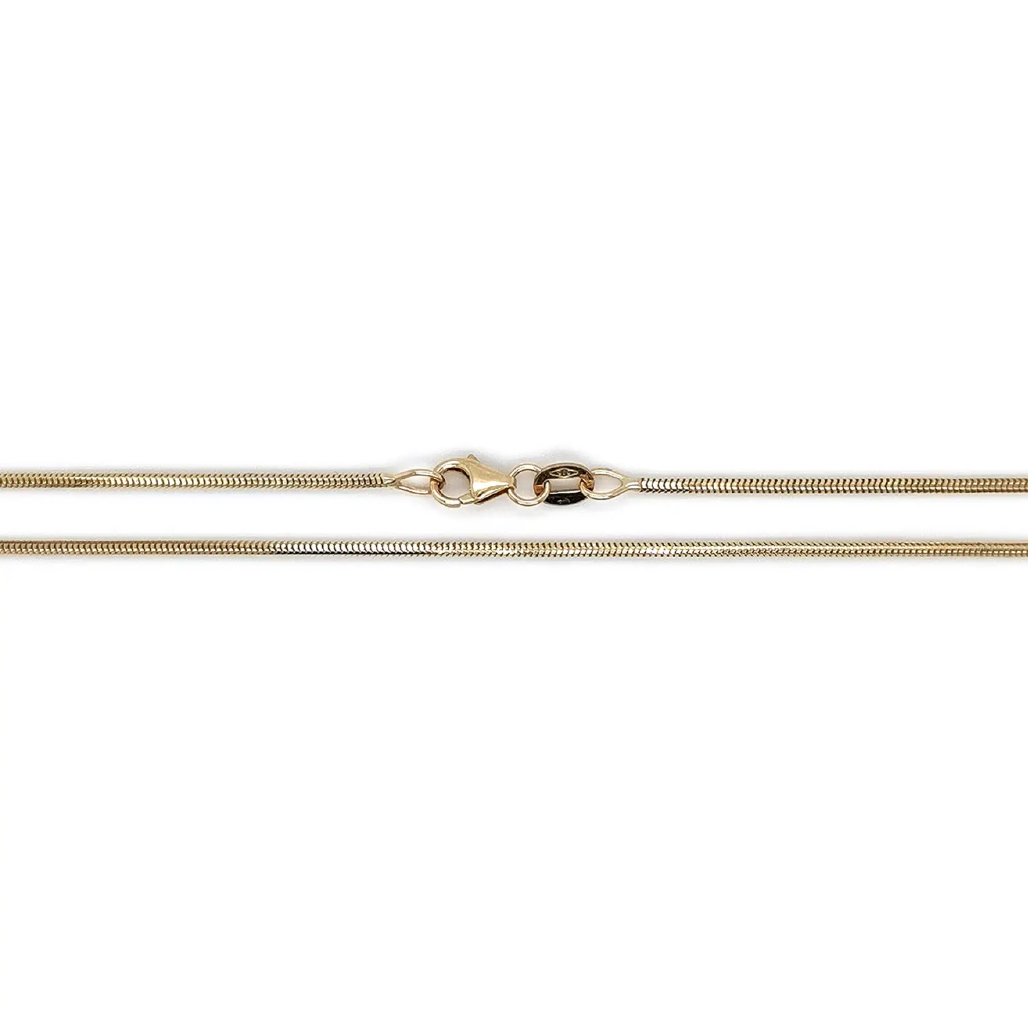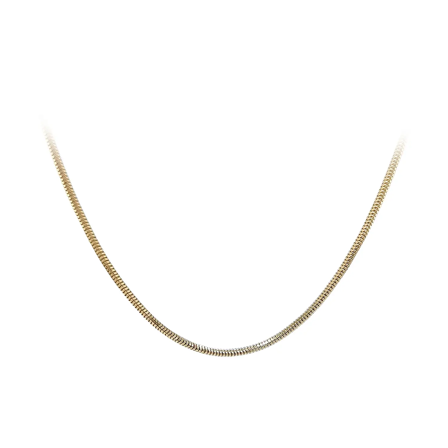 Dây chuyền vàng dạng rắn gây ấn tượng với cấu trúc mượt mà, liền mạch ôm theo đường cổ, tạo nên ánh sáng sang trọng và tinh tế. Nhờ kiểu mắt xích dạng rắn đặc trưng, dây mang lại cảm giác mềm mại và thoải mái, trong khi thiết kế tối giản tạo nên vẻ đẹp hiện đại và thanh lịch. Độ rộng 1,20 mm giúp dây trông nhẹ nhàng nhưng vẫn thu hút.