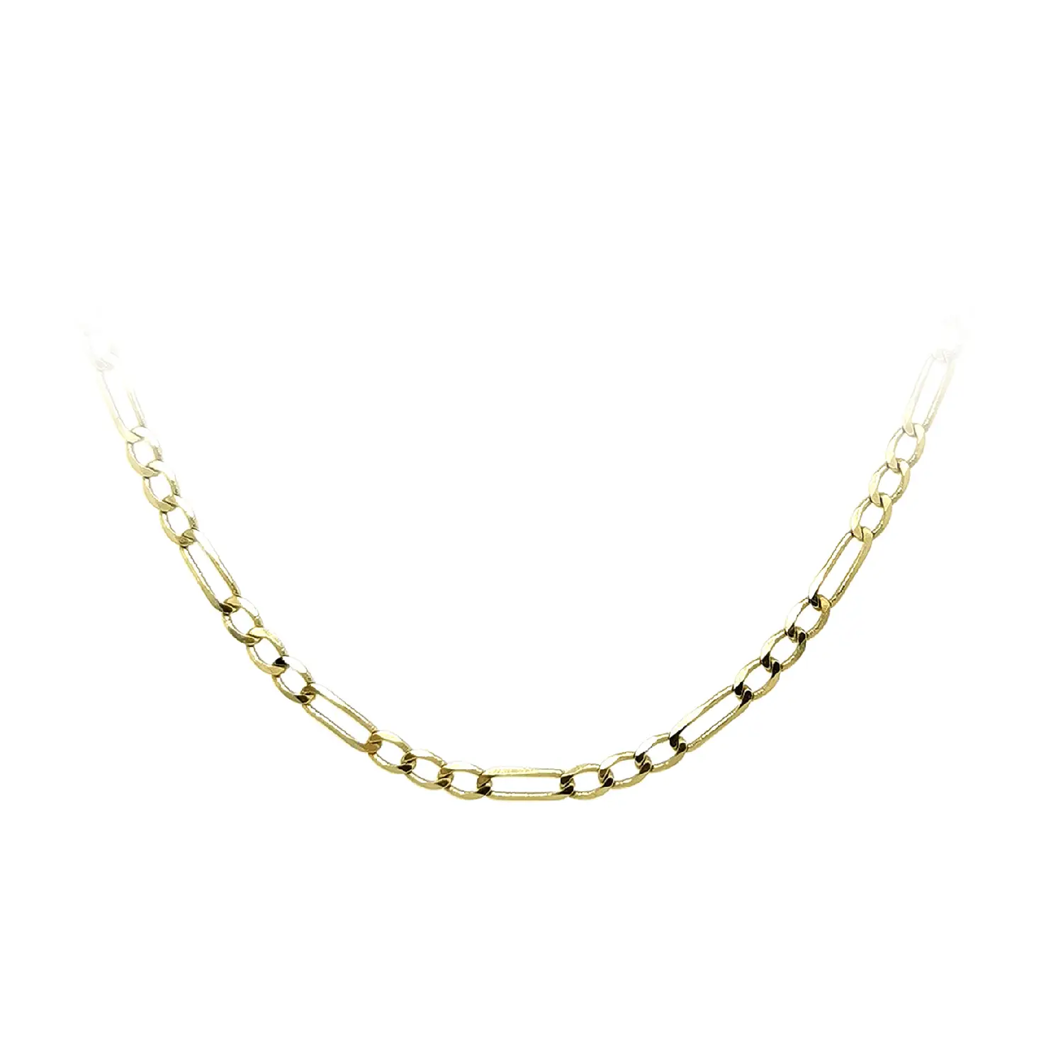 Sợi dây chuyền vàng Figaro thanh lịch, dài 50 cm và rộng 2,40 mm, nổi bật với họa tiết mắt xích dài – ngắn xen kẽ đặc trưng. Thiết kế Ý truyền thống này vừa tinh tế vừa nổi bật, phù hợp để đeo hằng ngày hoặc trong các dịp đặc biệt.